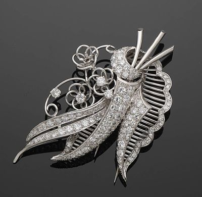 Clip en or gris 18K (750) dessinant une gerbe, serti de diam…
