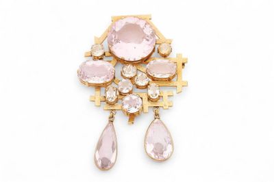 Grand pendentif-broche en or rose 18K (750) guilloché dessin…