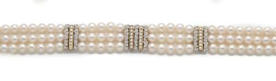 MIKIMOTO Collier de chien de 3 rangs de perles de culture po…