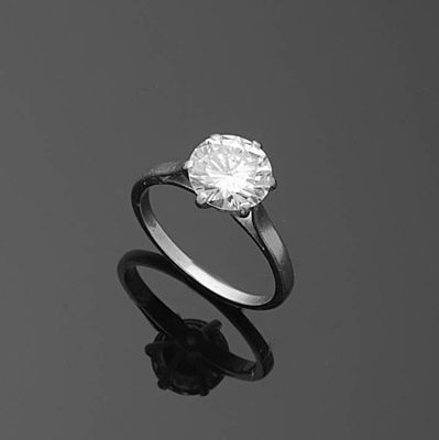 Bague en or gris 18K (750), ornée d'un diamant rond de taill…
