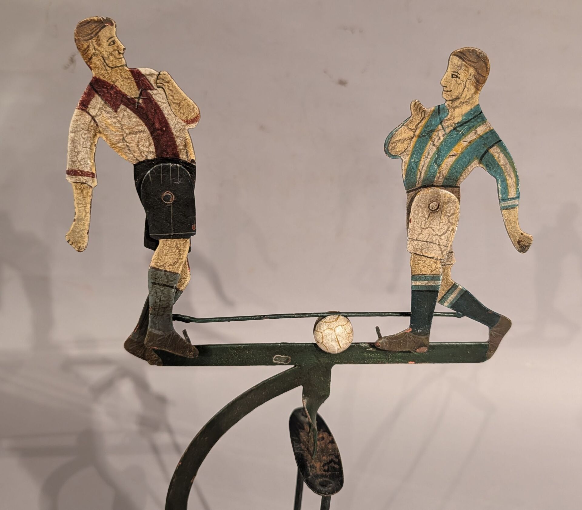 Mobile En métal tôlé peinte représentant deux joueurs de foot Probablement Angleterre, Années 1920 H.: 49 cm