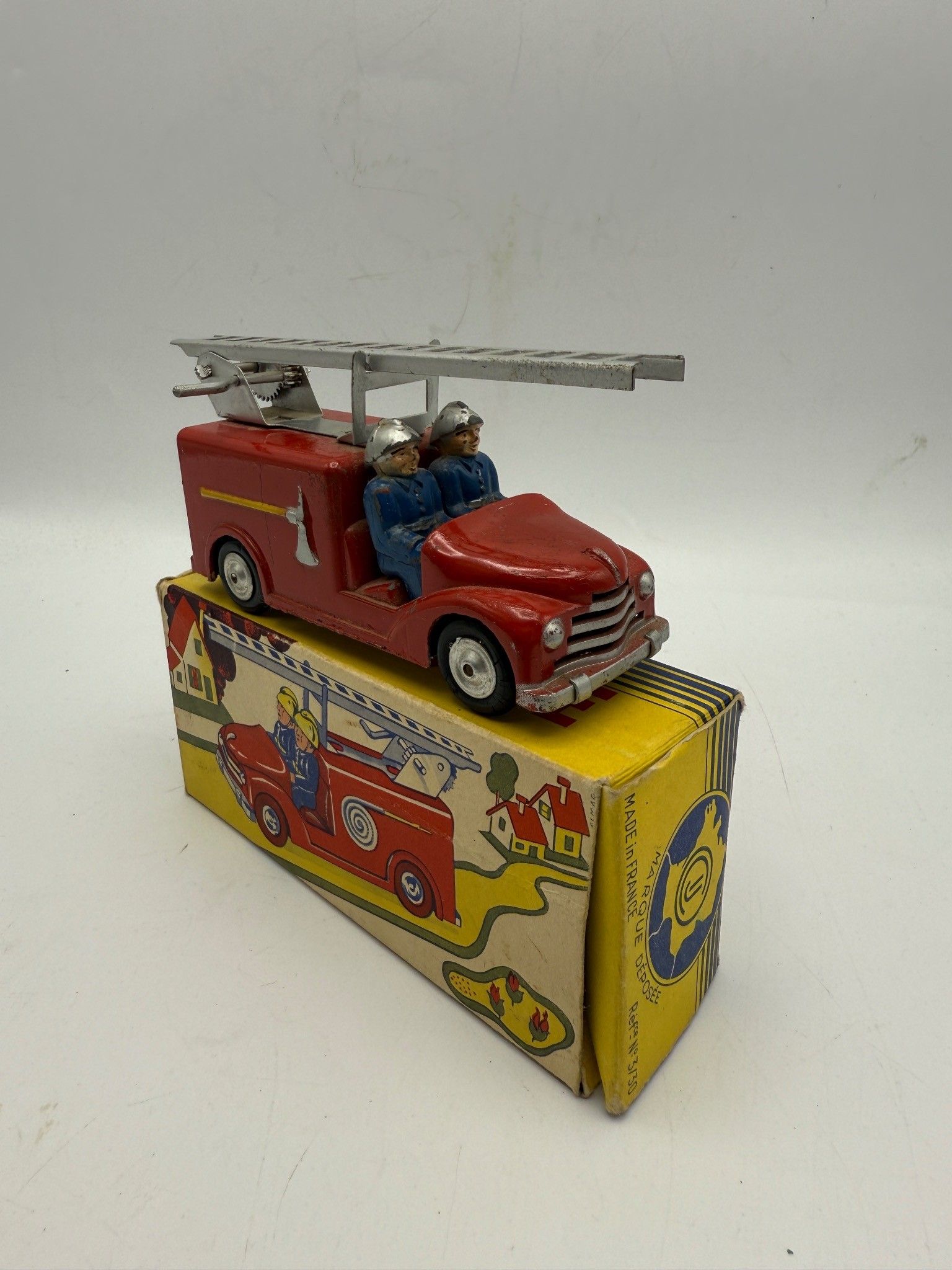 CIJ, réf. 3/30, auto-pompe de pompiers avec échelle et personnages. Bon état. Eclats de peintures.