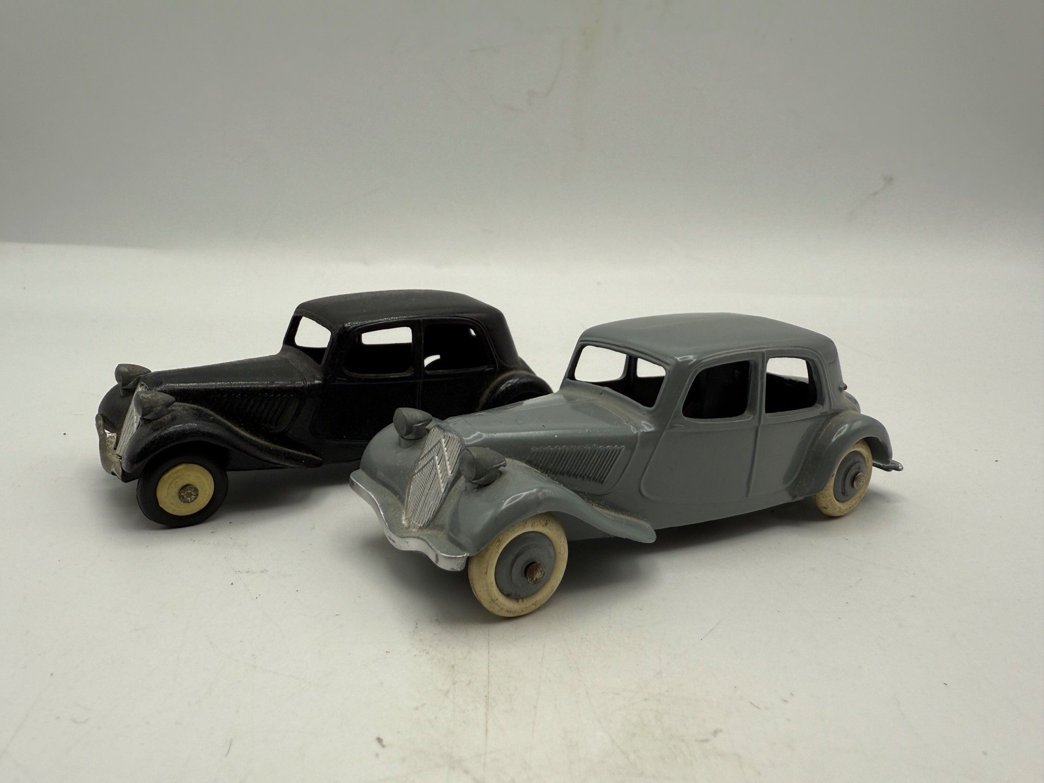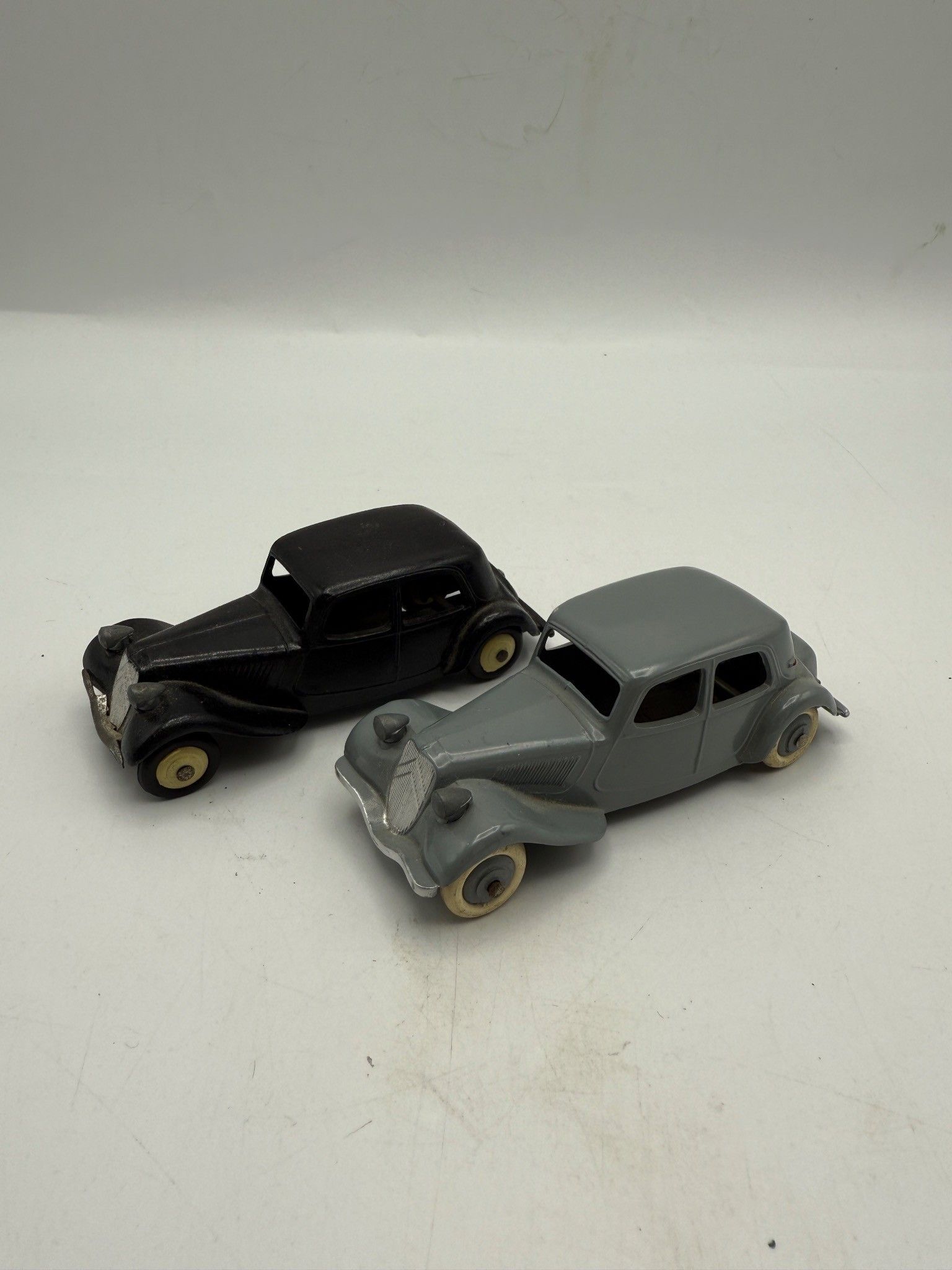 Dinky Toys France ref. 24N. Deux Citroën 11 BL. L'une grise, l'autre noire. Bon état.