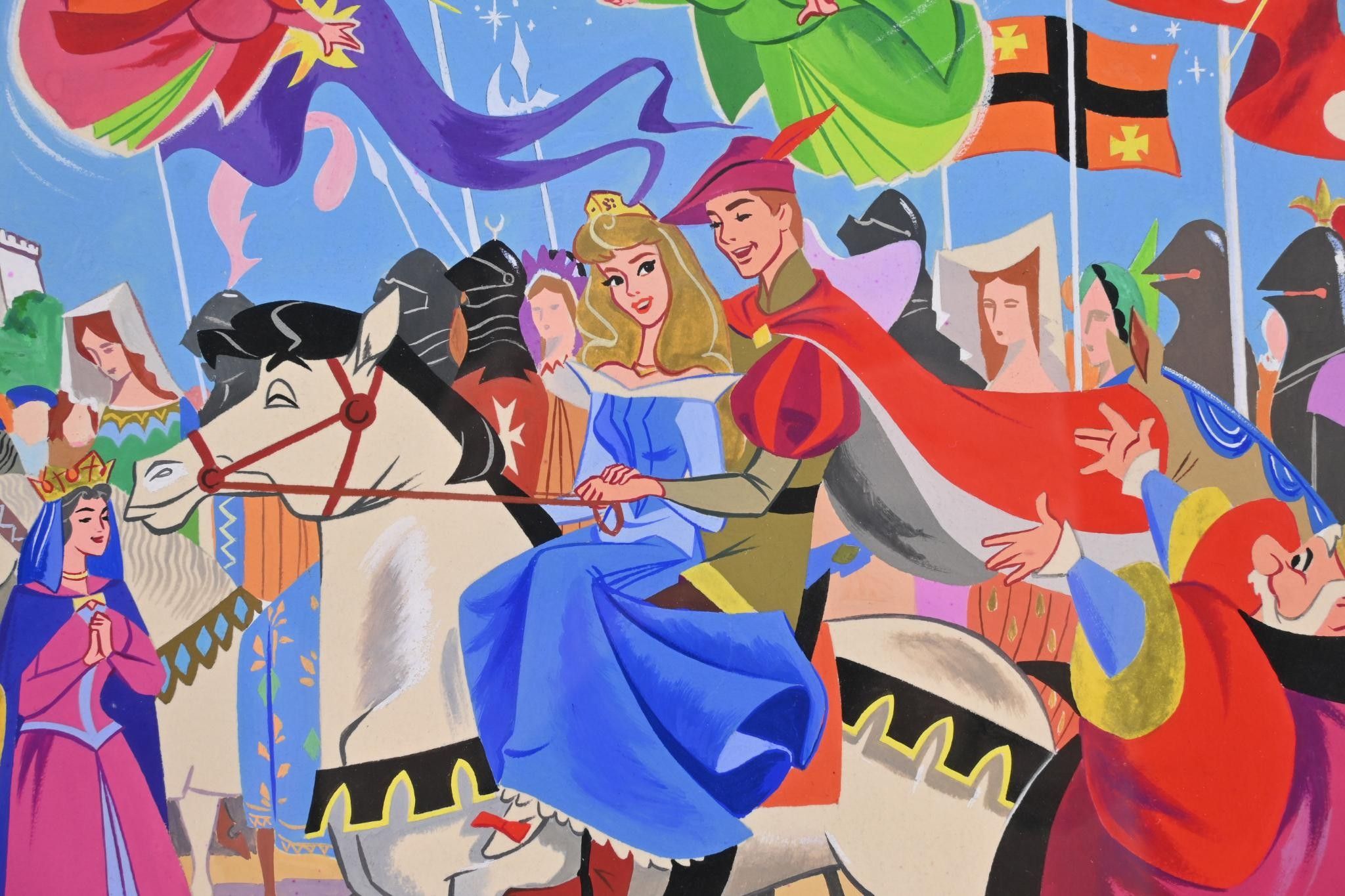 STUDIO WALT DISNEY – Gouache scène de la belle aux bois dormant retournant au château avec son Prince Dimensions : 21 x 25 cm