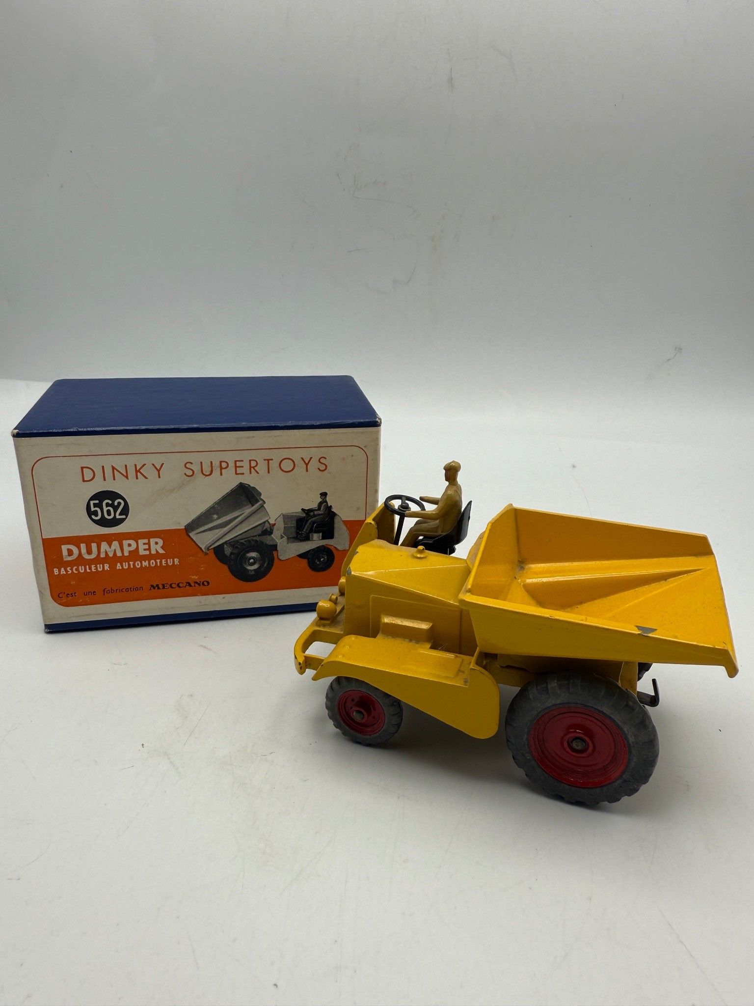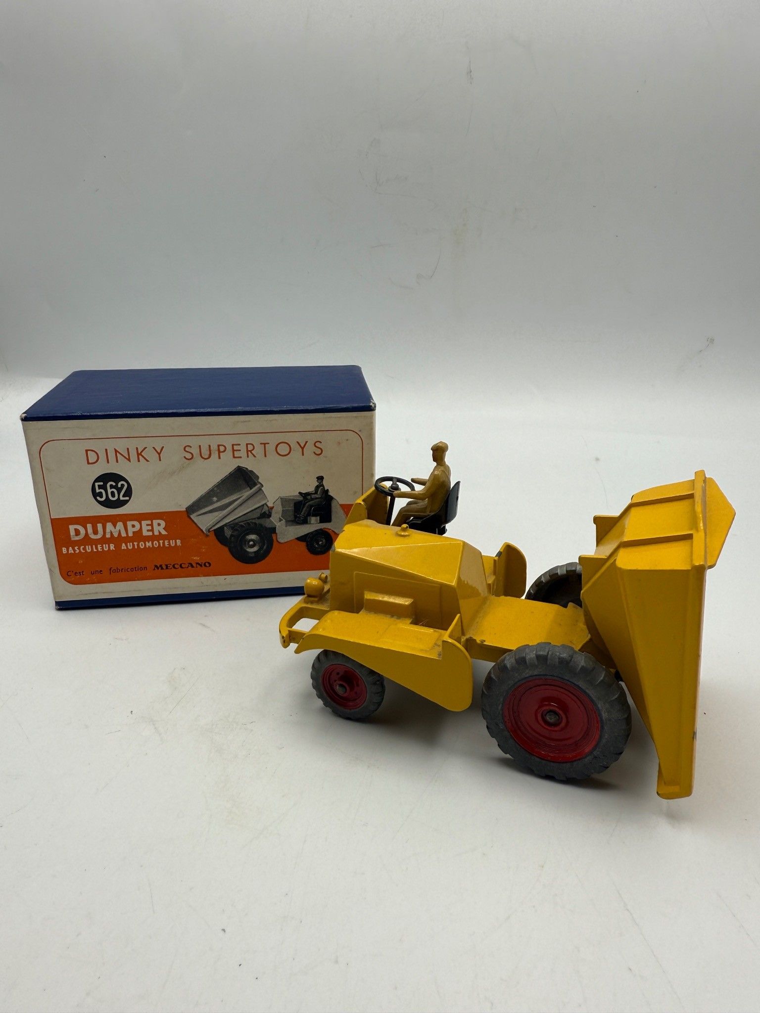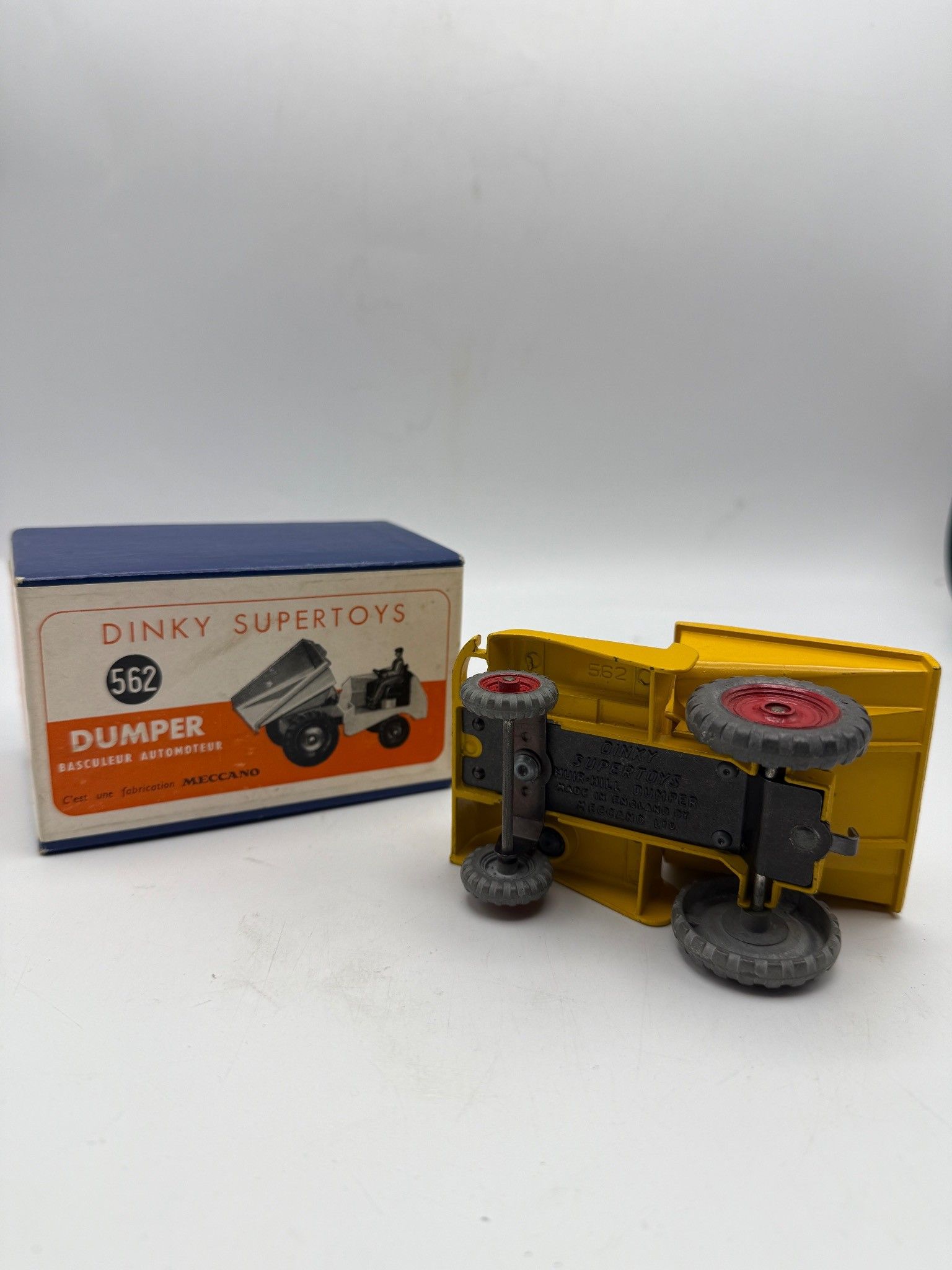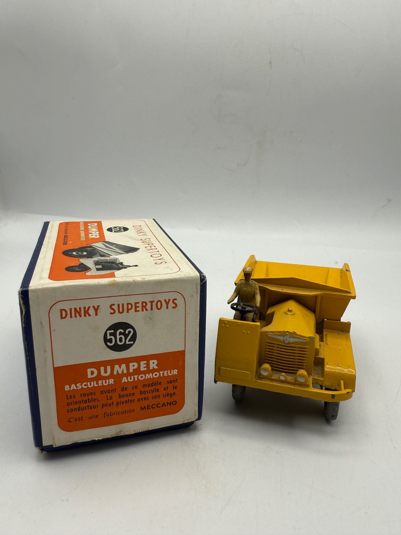 DINKY SUPERTOYS, réf. 562, Dumper Basculeur Automoteur, jaune, avec conducteur, en boîte bleue. Très bon état.