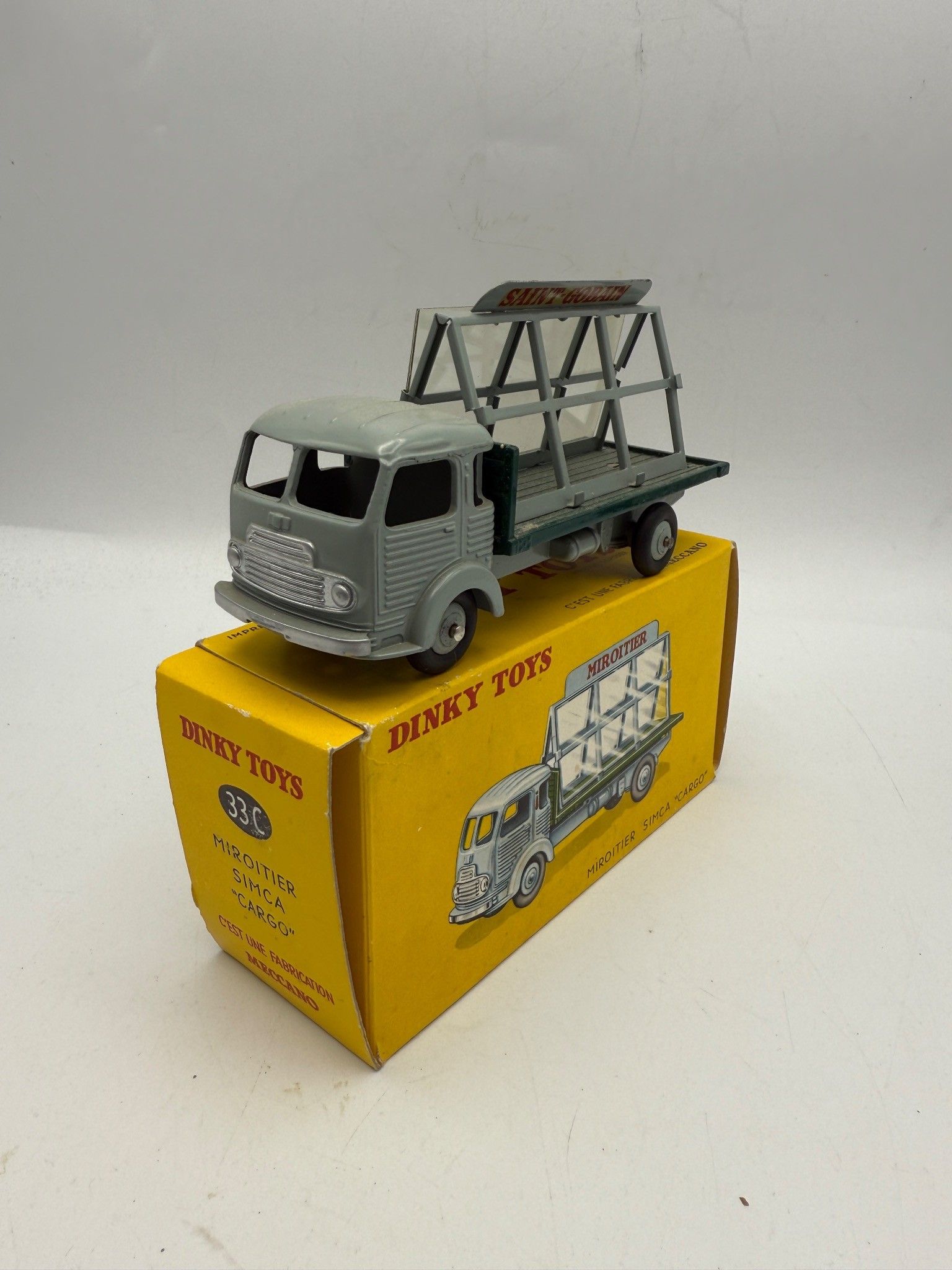 DINKY TOYS France, réf. 33C, Miroitier Saint Gobain Simca "cargo", porteur gris et plateau vert.