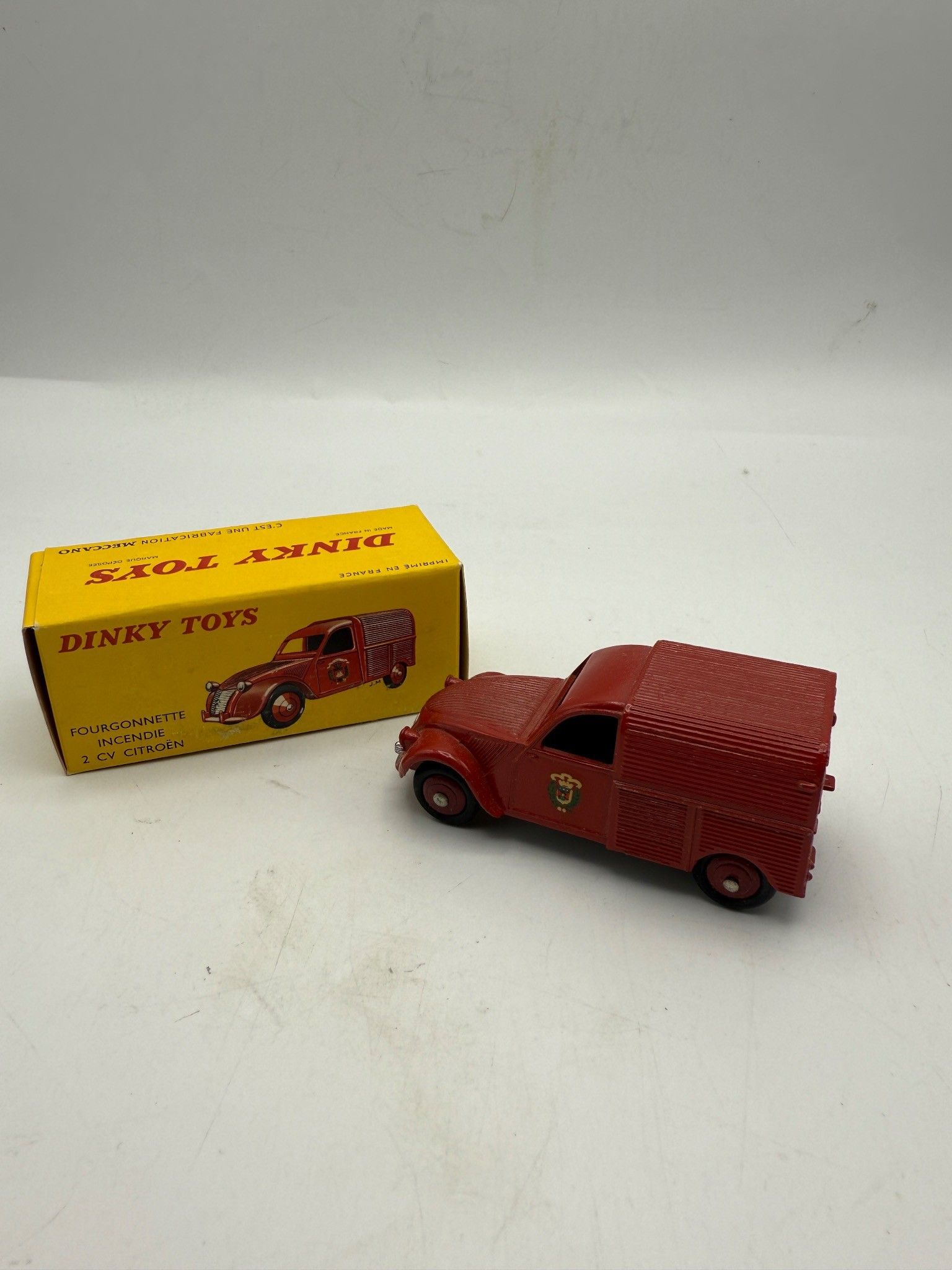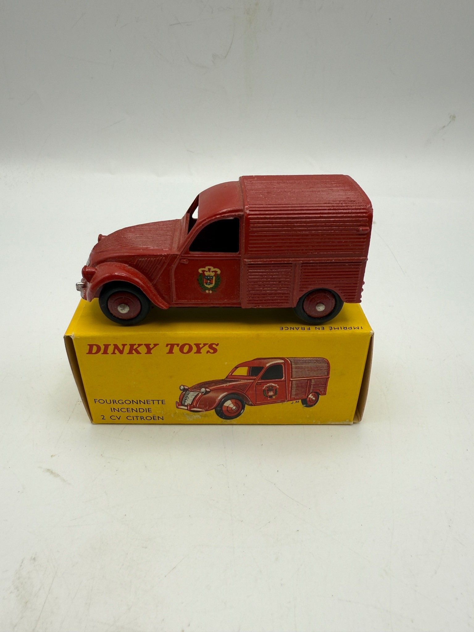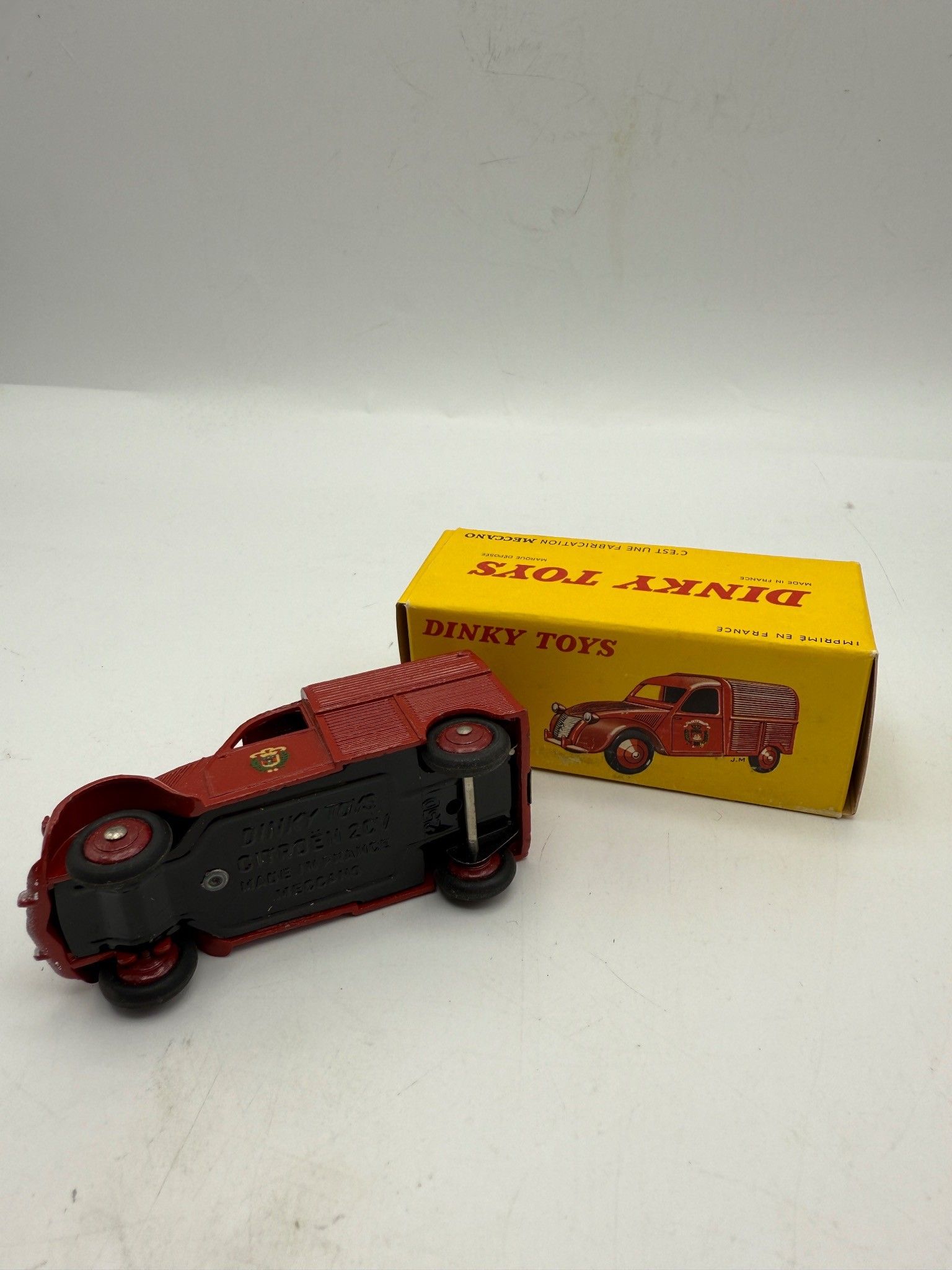 DINKY TOYS France, réf. 25D, Citroën 2CV Fourgonnette Incendie, jantes convexes rouges. Parfait état