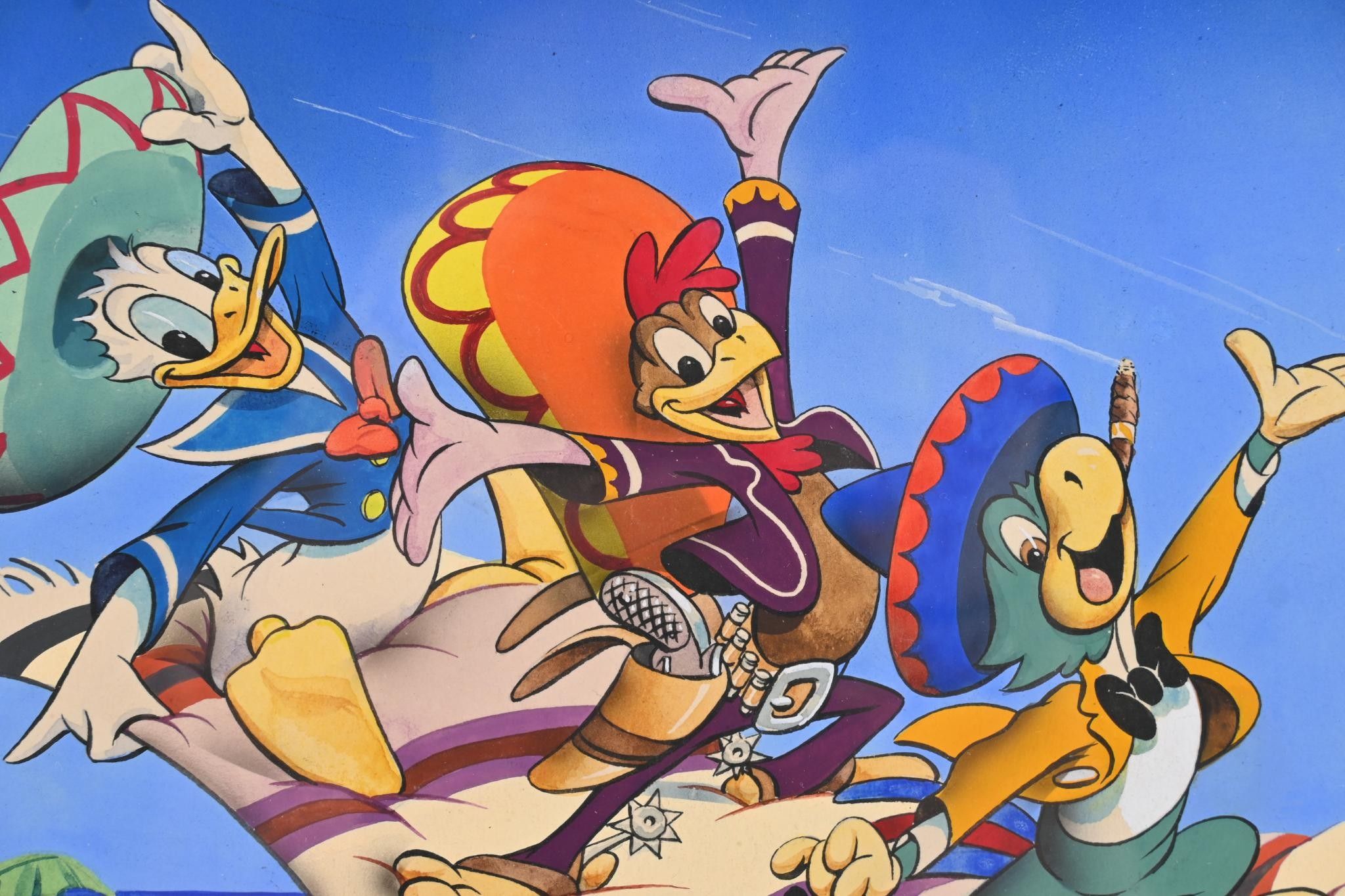 STUDIO WALT DISNEY – Gouache approuvé Walt Disney Mickey Mouse S.A 52, champs élysées Paris, les trois caballeros