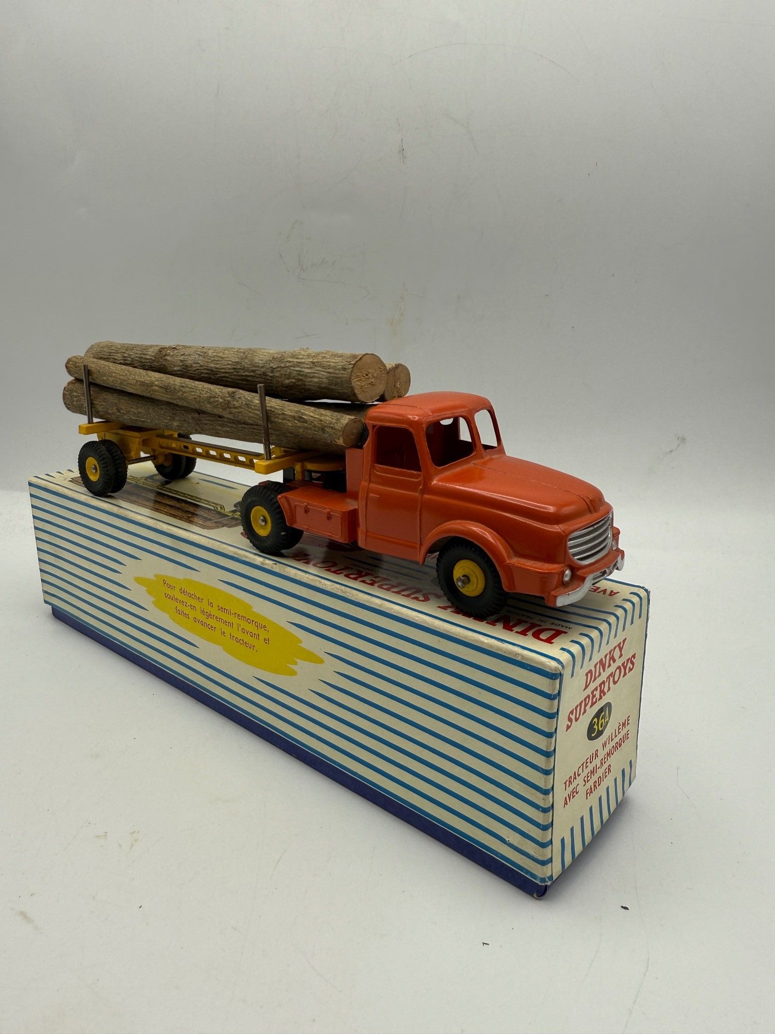 Dinky Supertoys réf. 36A, Tracteur Willème avec semi-remorque Fardier et ses rondins de bois. Très bon état.