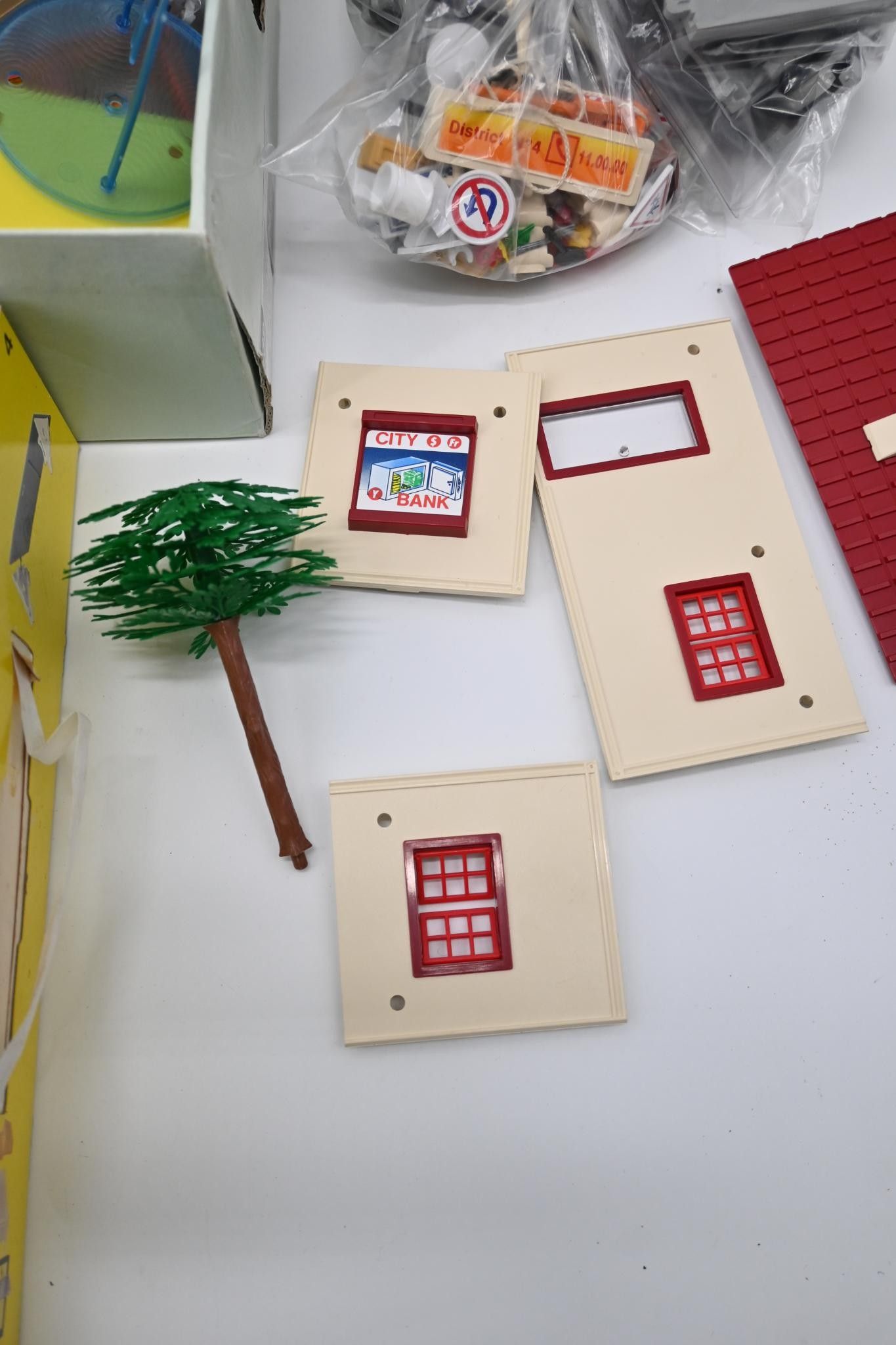 Ensemble d'éléments de construction de ville et mobilier urbain (maisons, cabines téléphoniques, trottoirs, lampadaires etc...)