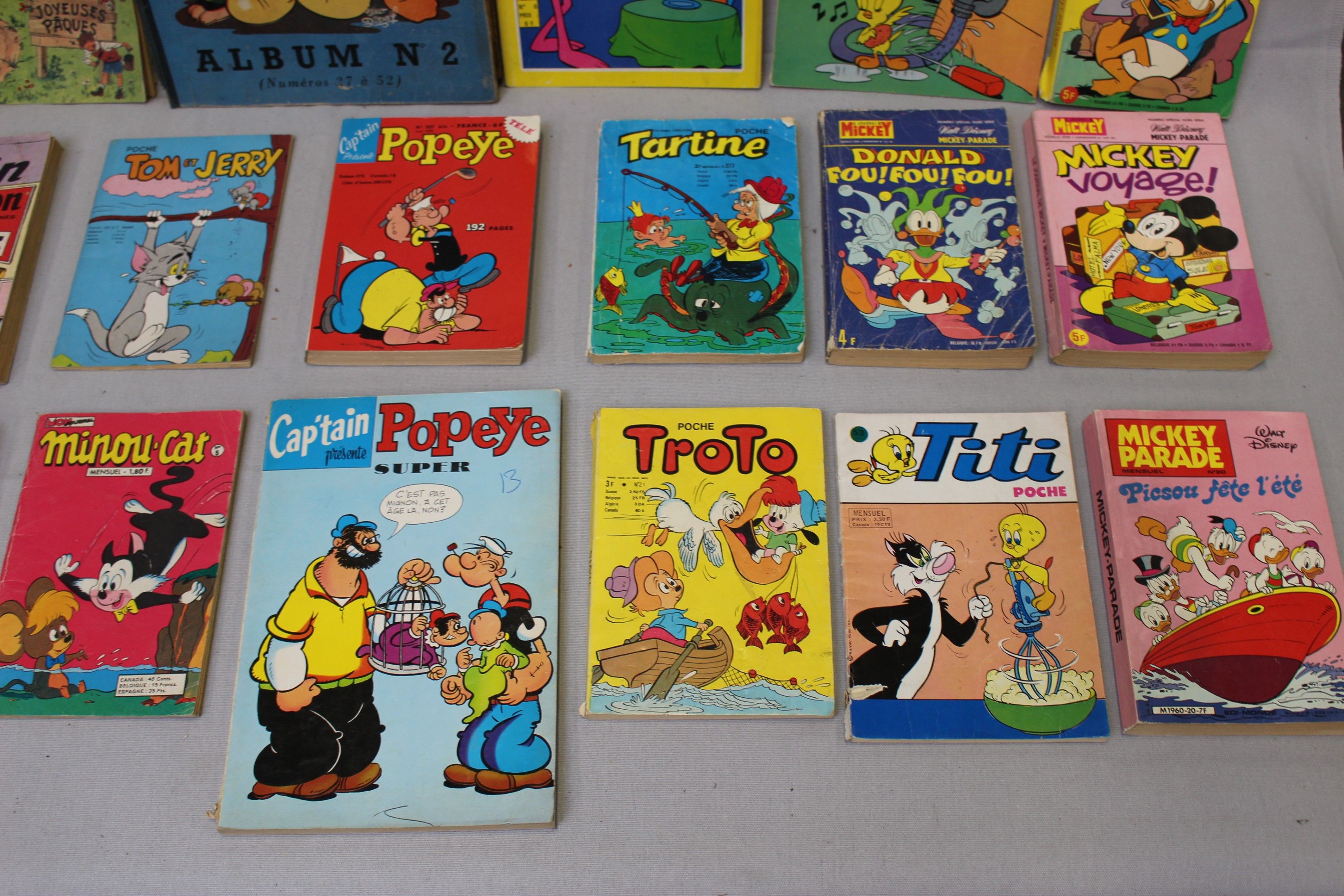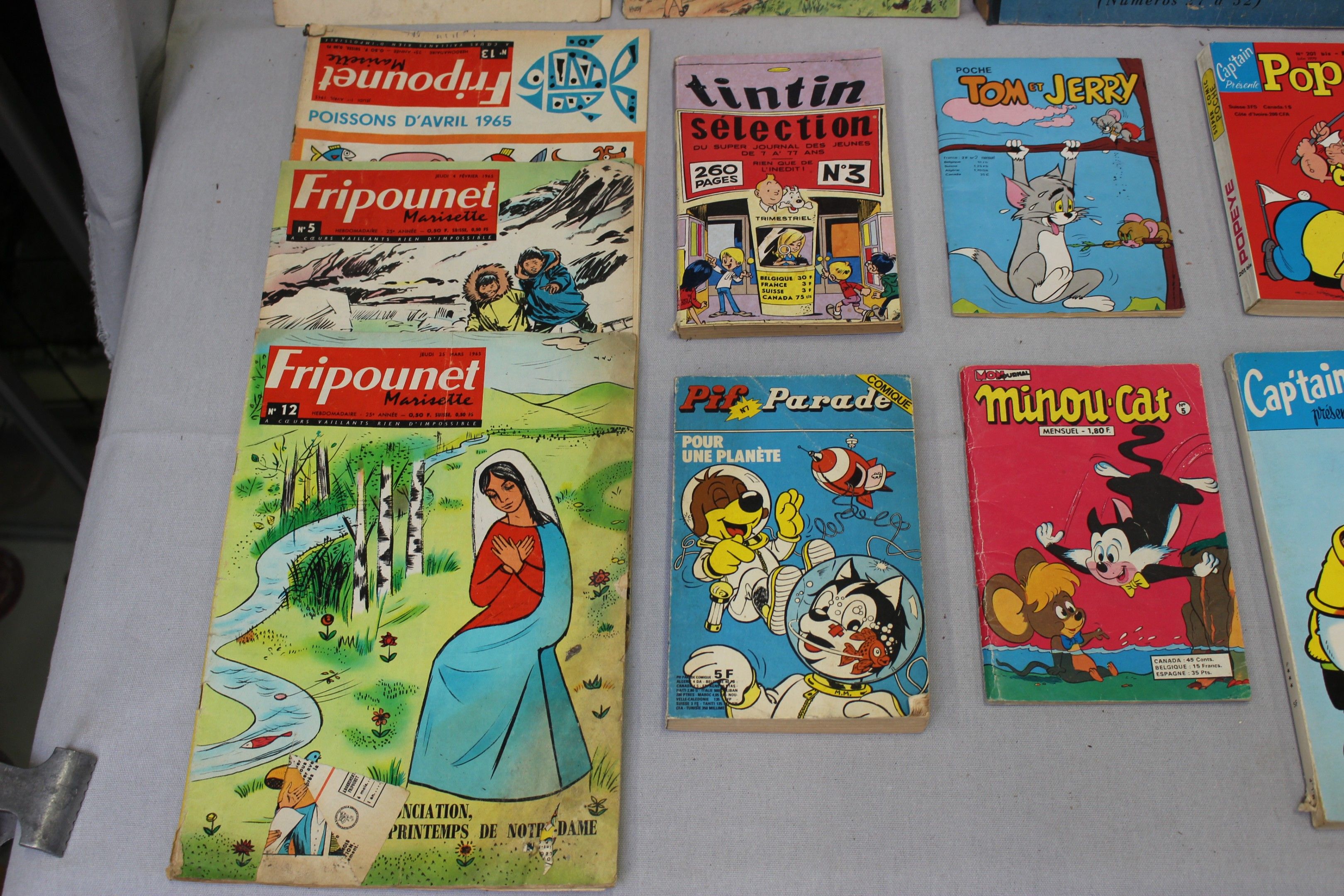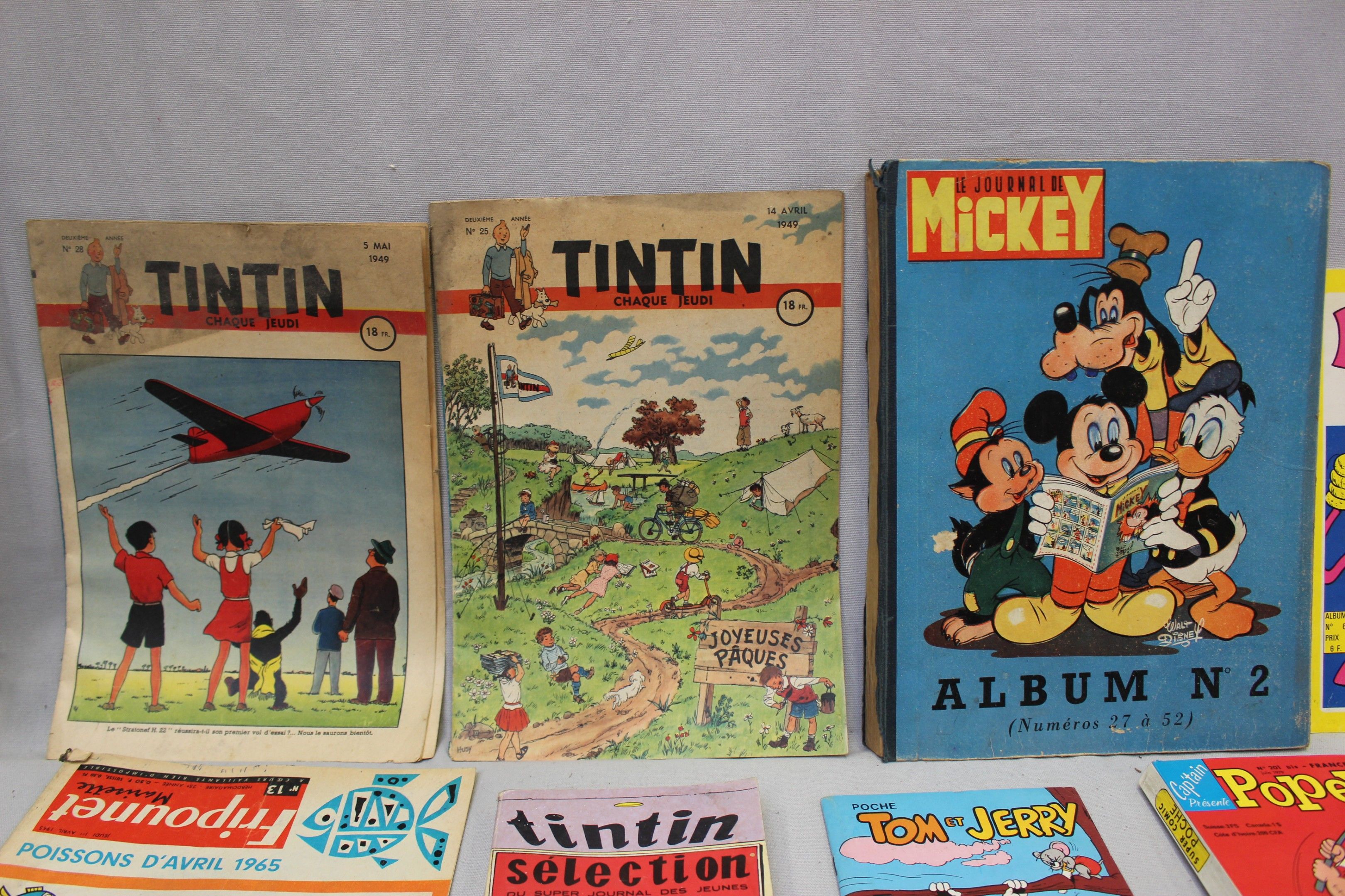 [BANDES DESSINEES] Lot comprenant : Le journal de Tintin n°25 et 28 + Tintin Selection n°3 + Le journal de Mickey, album n°2 + Popeye + Mickey Parade + Titi + Pif Parade + Fripounet, etc ...