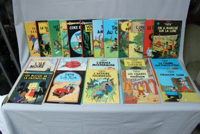 Ensemble de 22 albums des Aventures de Tintin en réedition