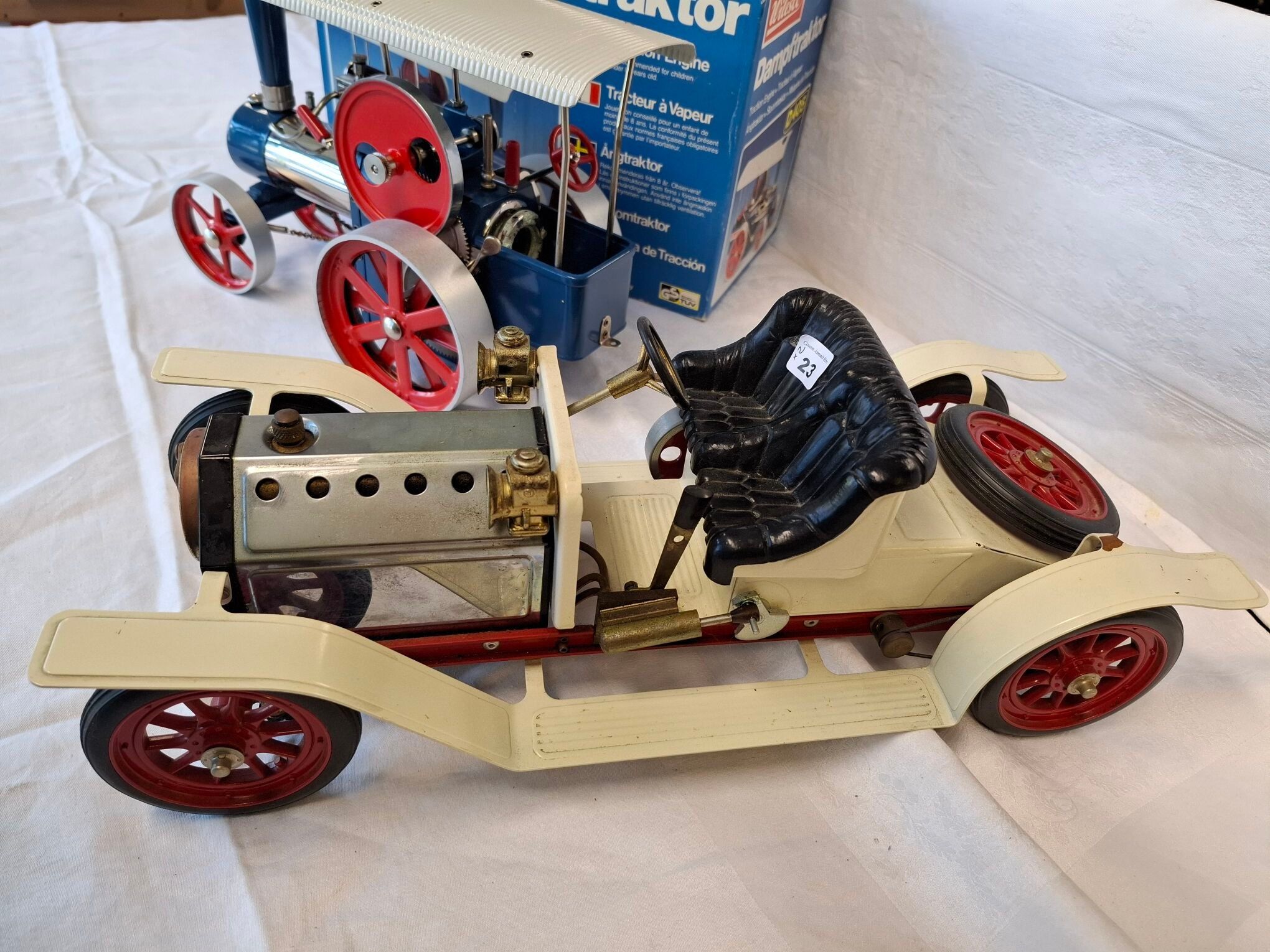 Mamod / Willesco - Voiture vapeur roadster - légers éclats, siège à recoller et tracteur à vapeur, tres bel état dans sa boite