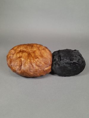 Deux manchons, un en fourrure de vison marron et l'autre en …