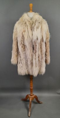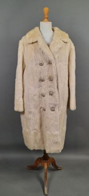Manteau en fourrure blanche, le col cranté et fermant devant…