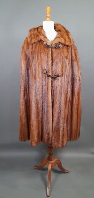 Cape en fourrure de vison brun travaillée à la verticale, le…