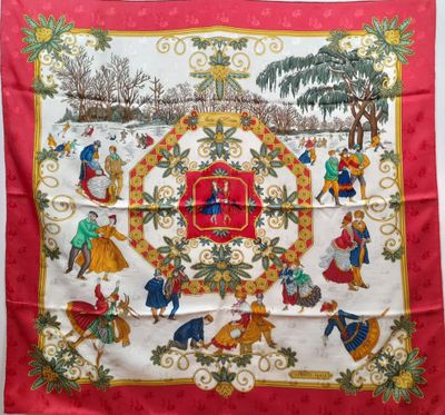 HERMES, PARIS. Carré en soie façonnée modèle "joies d'hiver"…