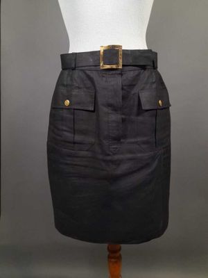 CHANEL, PARIS. Jupe en lin noir à deux grandes poches plissé…