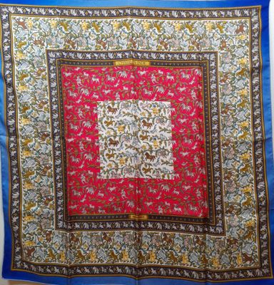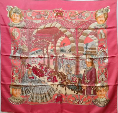 HERMES, PARIS. Carré en twill de soie modèle "Chasse en Inde…
