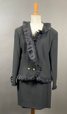 LORIS AZZARO, PARIS. Tailleur jupe en laine et acétate noirs…