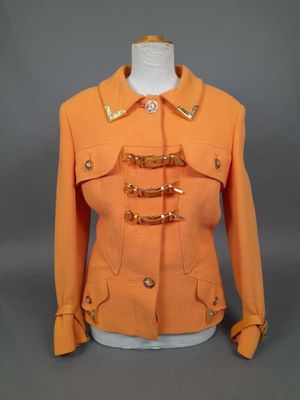 GIANNI VERSACE COUTURE. Tailleur jupe en crêpe de laine oran…