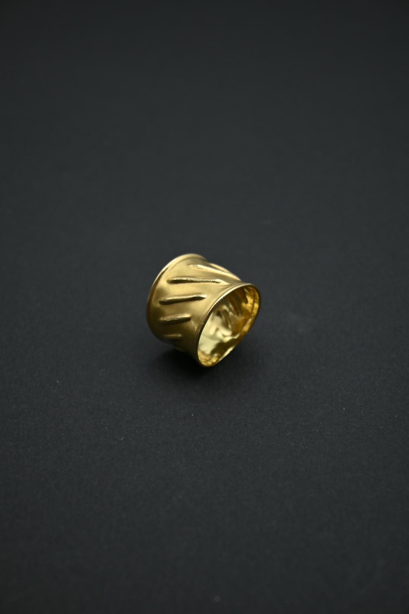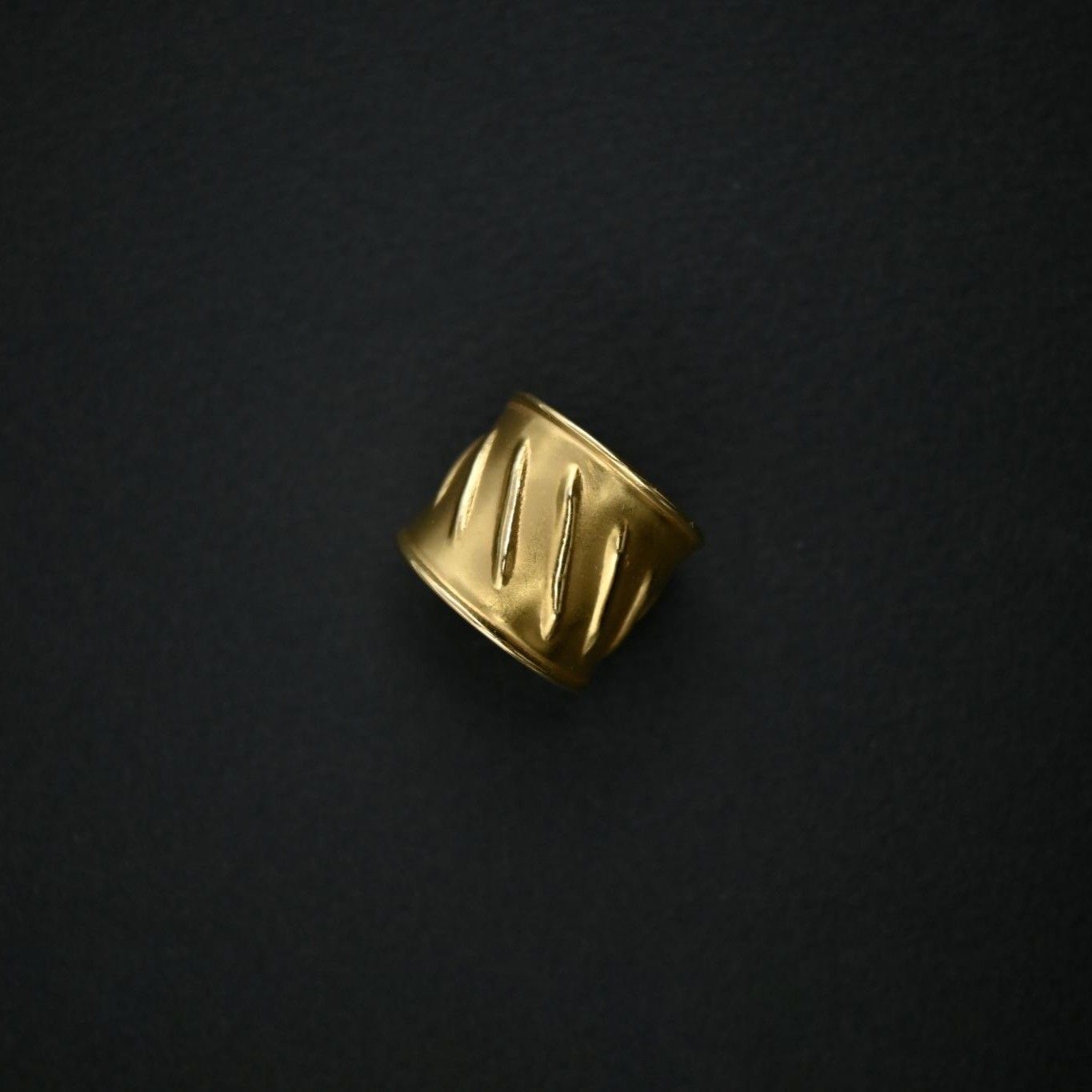Large anneau en or 18K 750 millièmes à décor stylisé.
