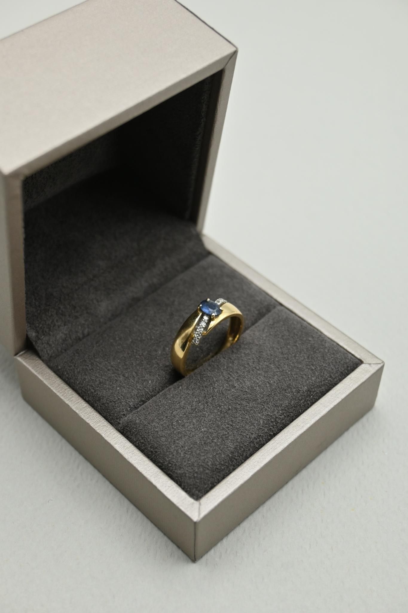 Bague en or 18K 750 millièmes, saphir ovale et ligne de petits diamants .