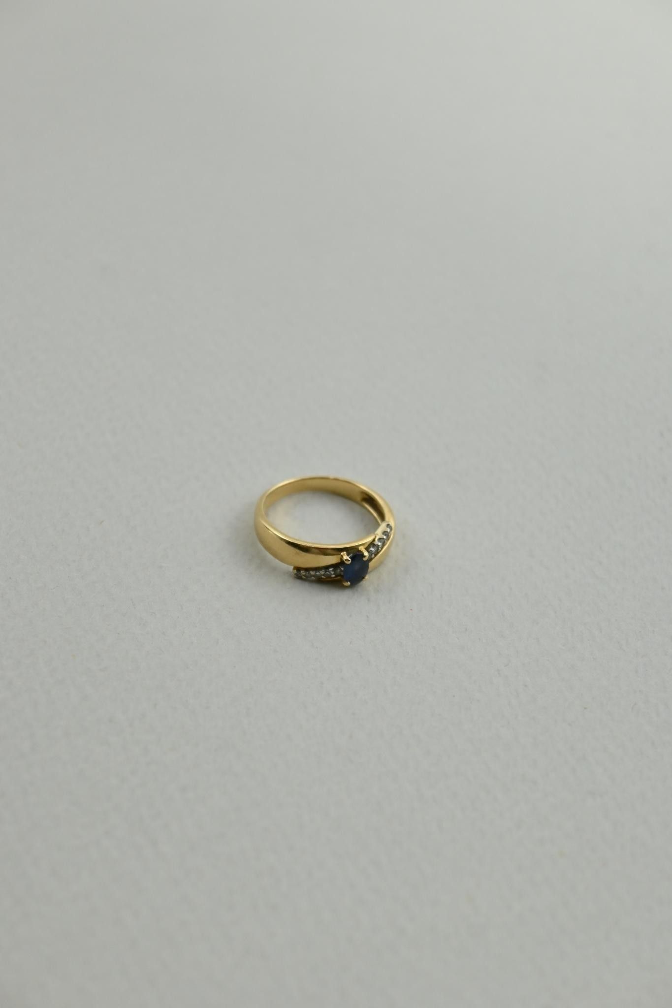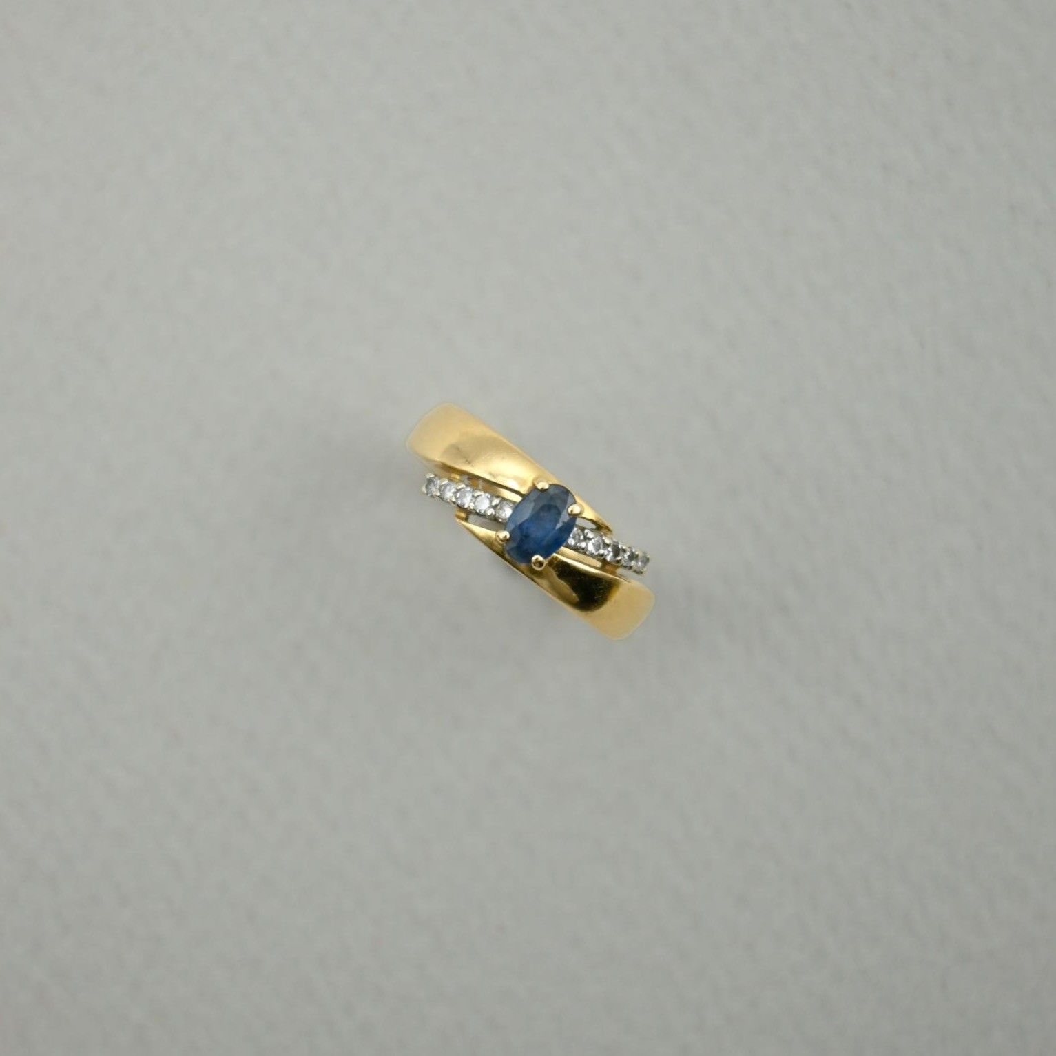 Bague en or 18K 750 millièmes, saphir ovale et ligne de peti…