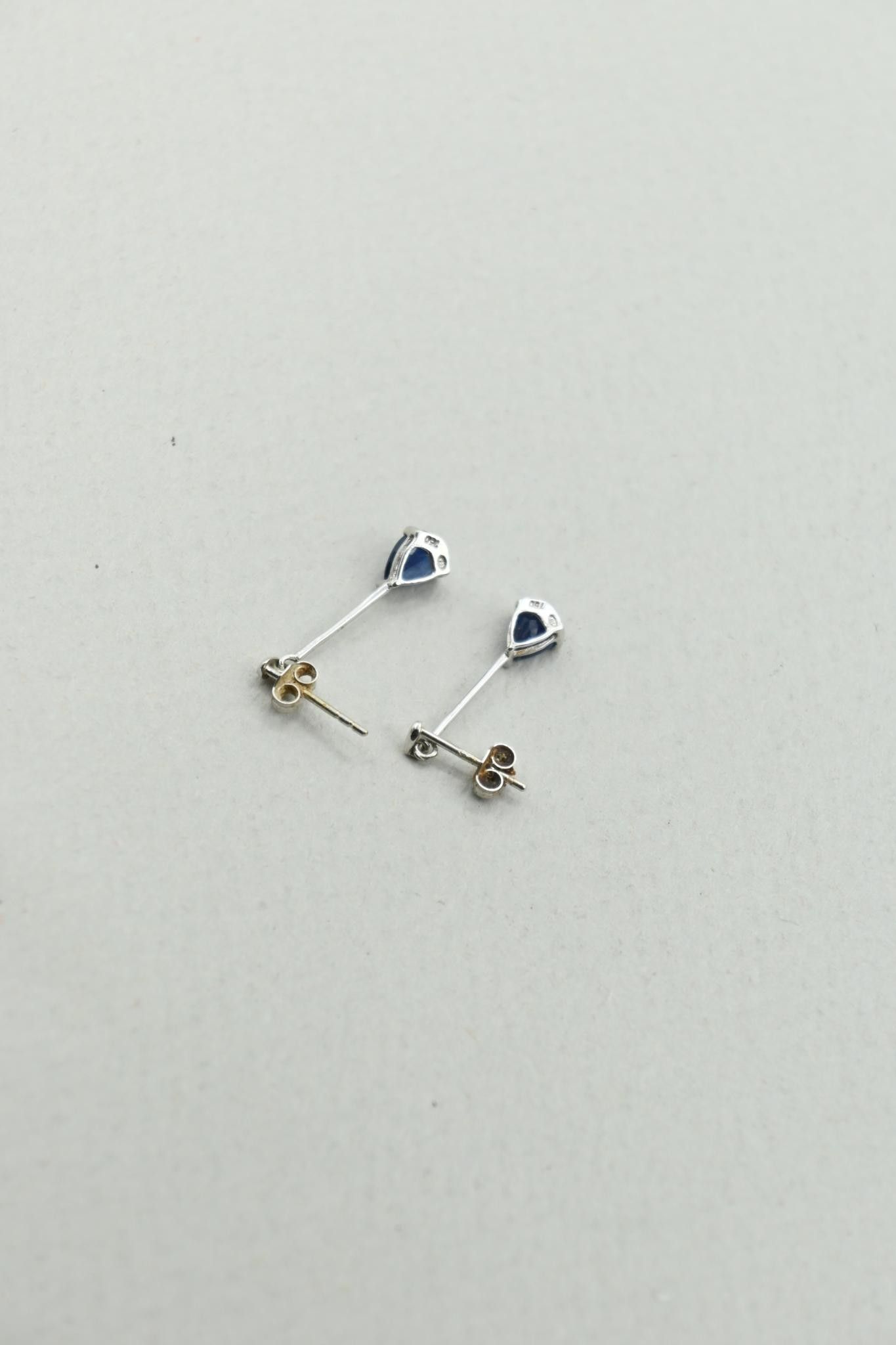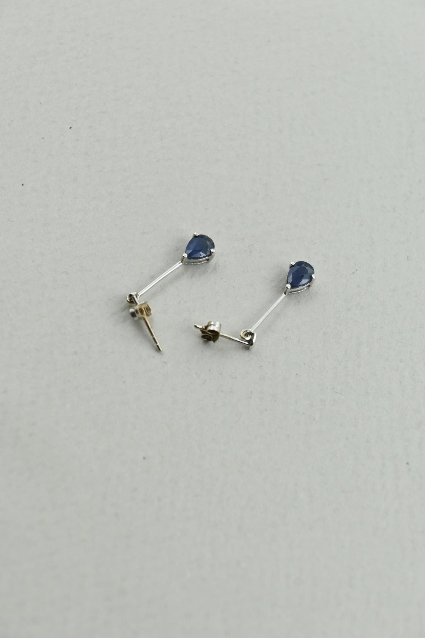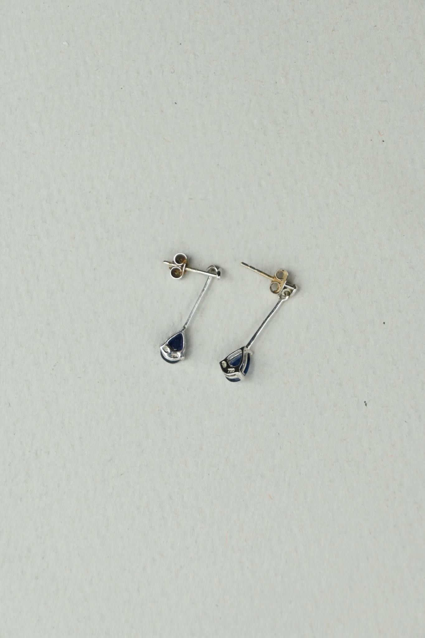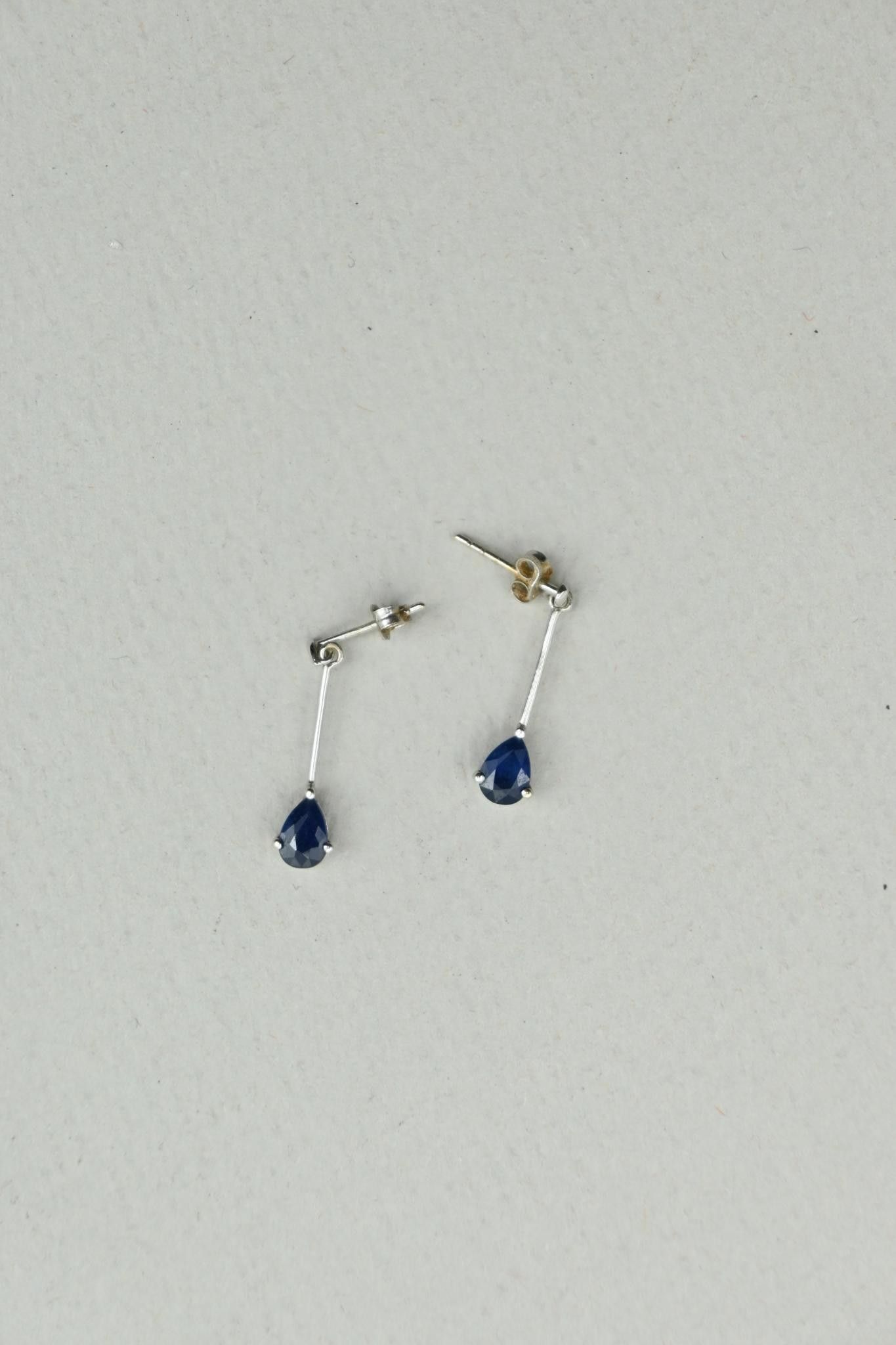 Paires de pendants d'oreilles en or gris 18K 750 millièmes, saphirs poires.