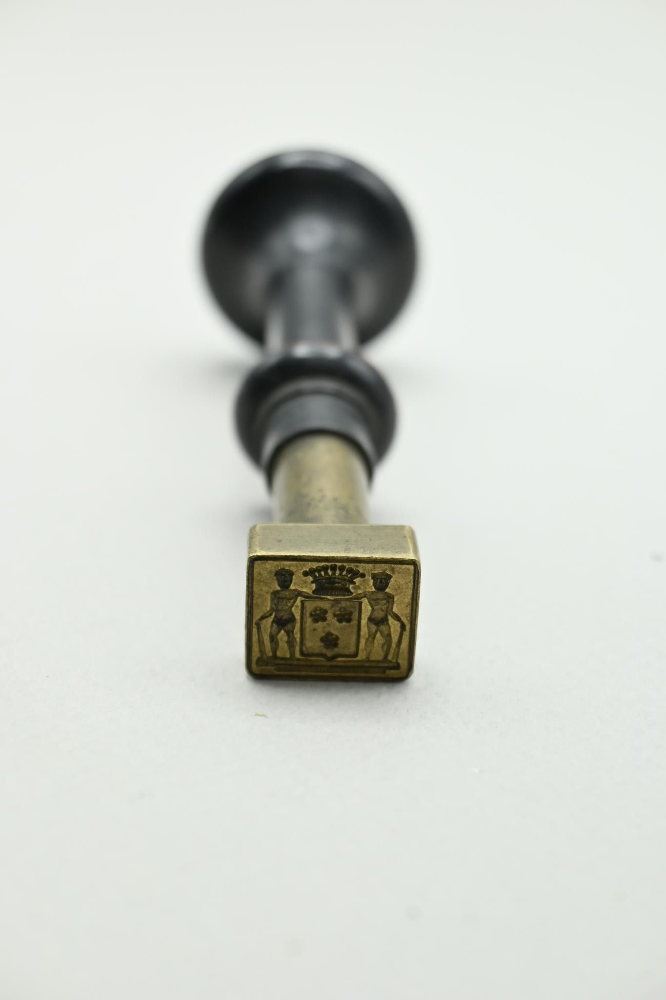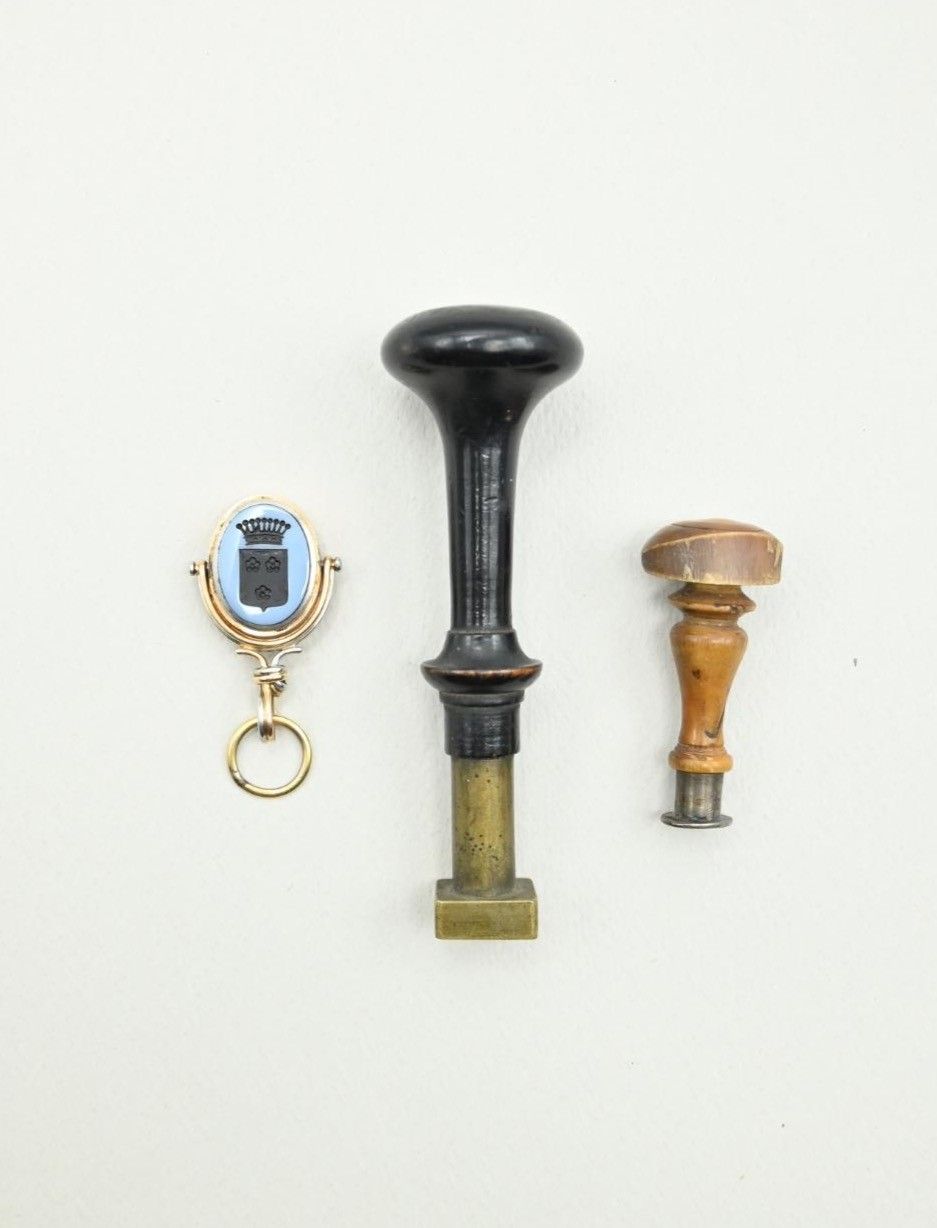 On y joint deux sceaux en résine et métal argenté aux armes différentes.