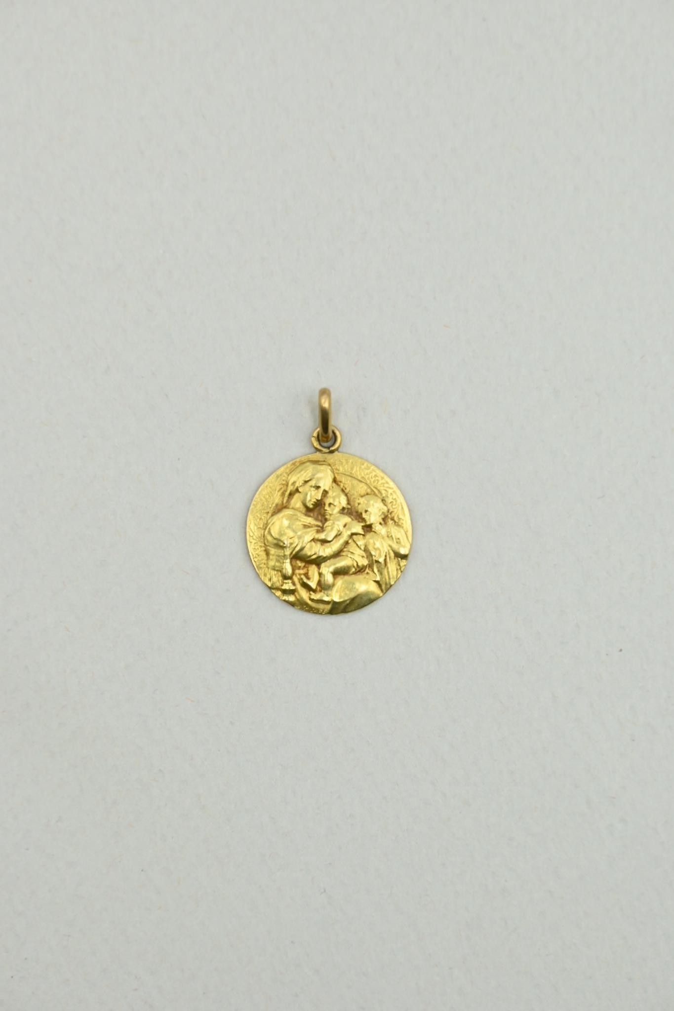 Médaille en or 18K 750 millièmes et couronne de roses au dos…