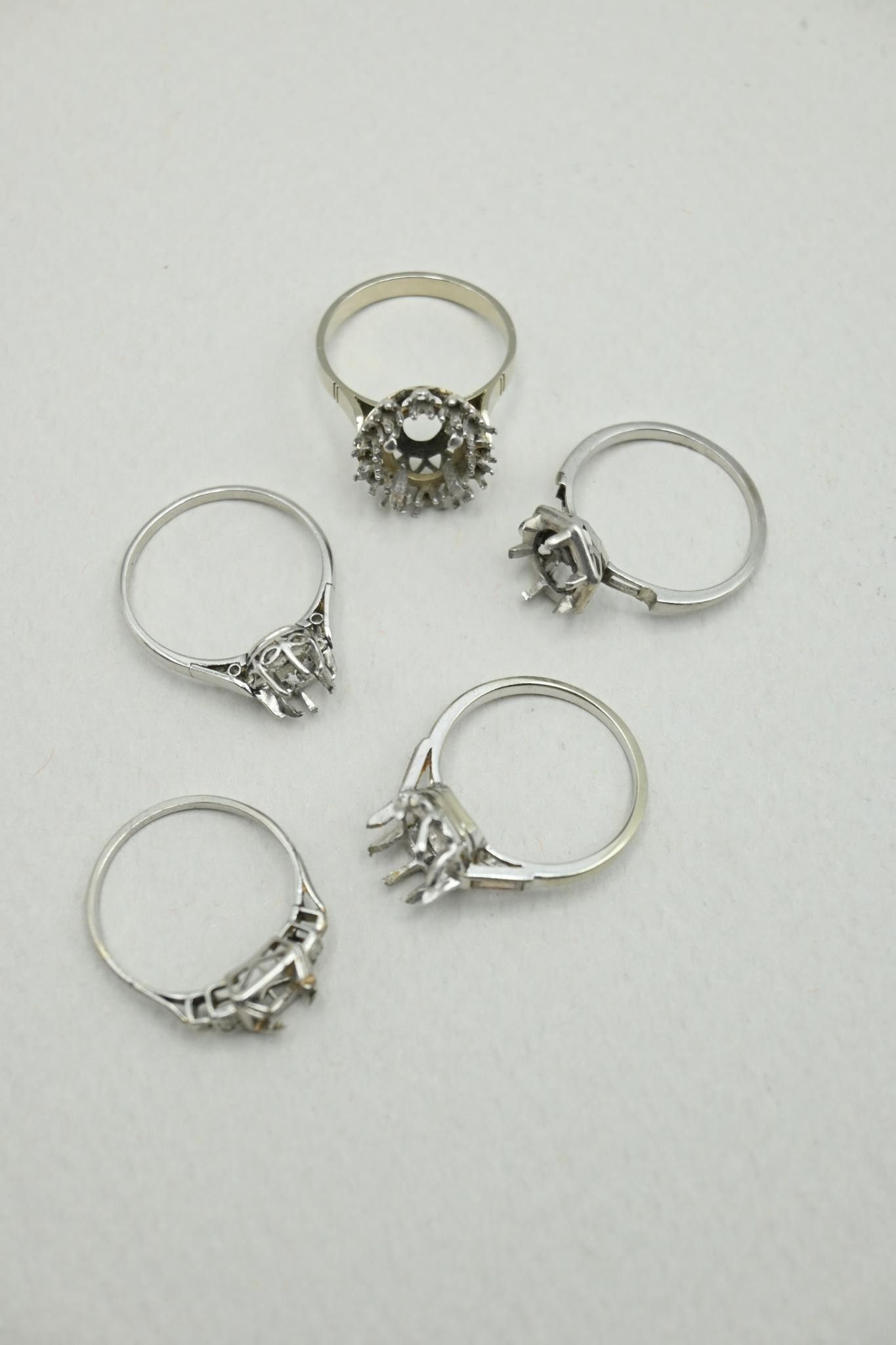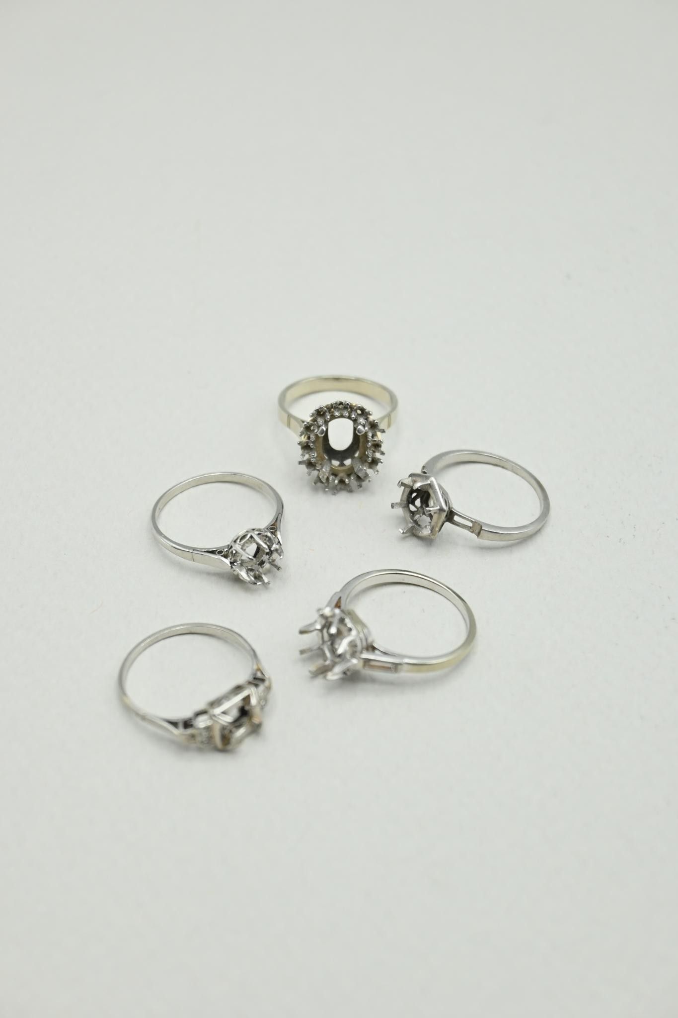 Cinq montures de bague en or gris 18K 750 millièmes et platine 850 millièmes