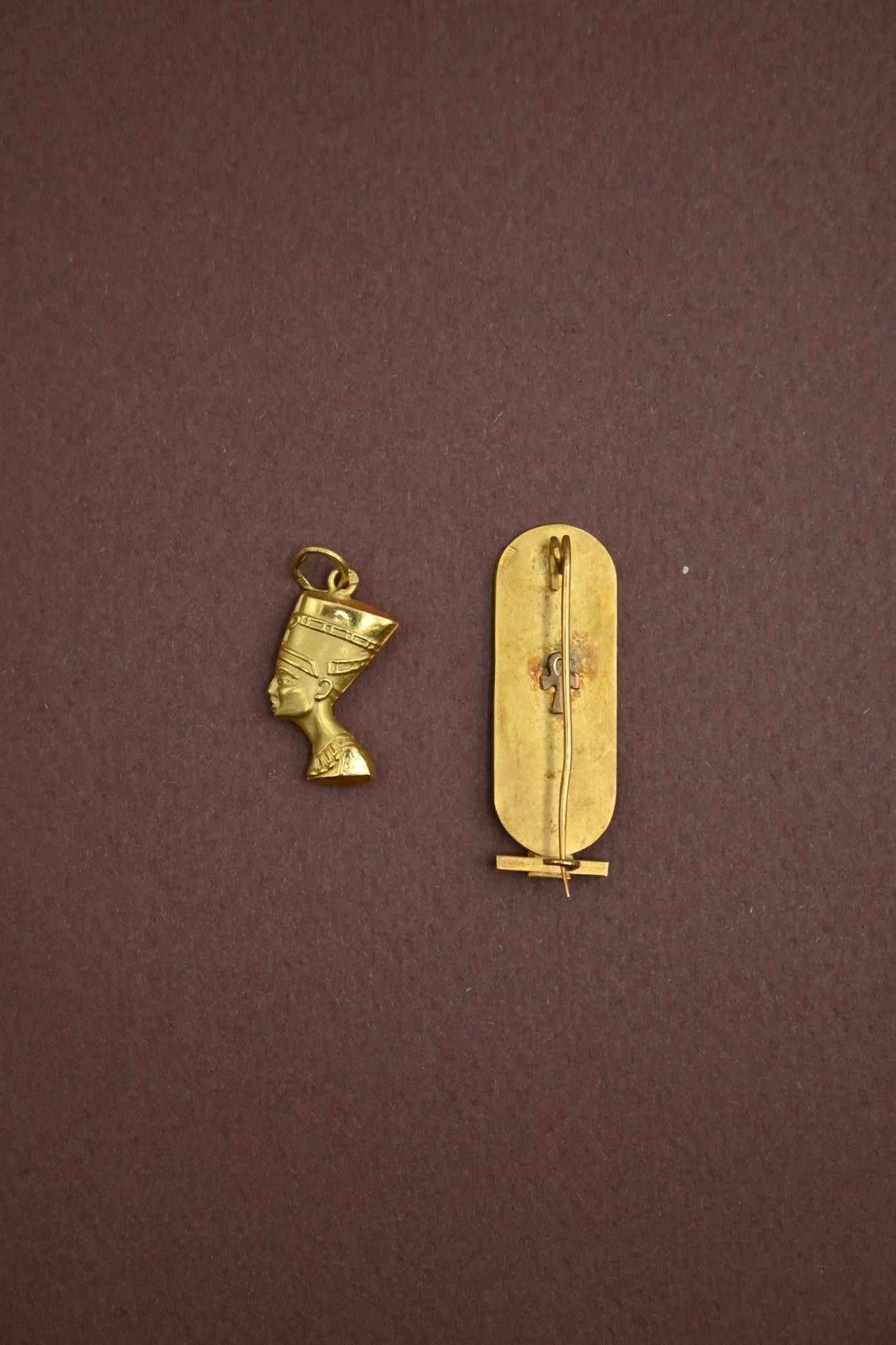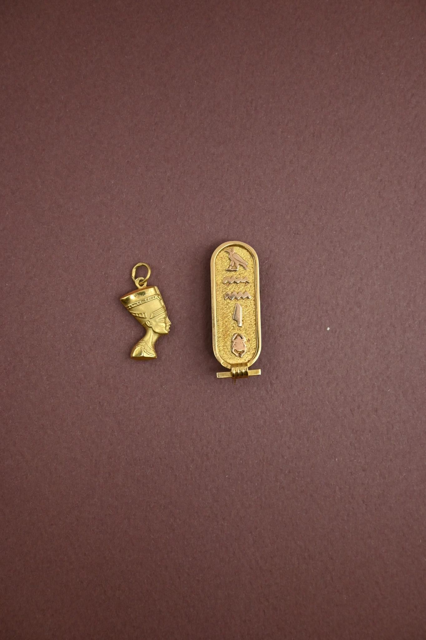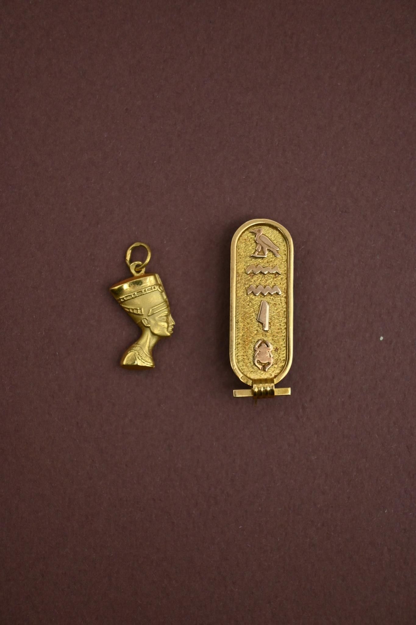 Pendentif Buste de Néfertiti et une broche cartouche en or 1…