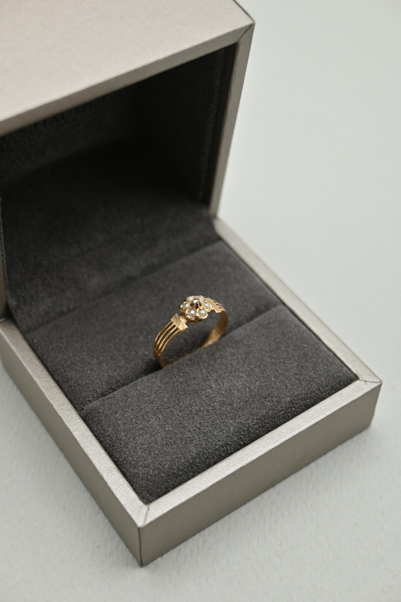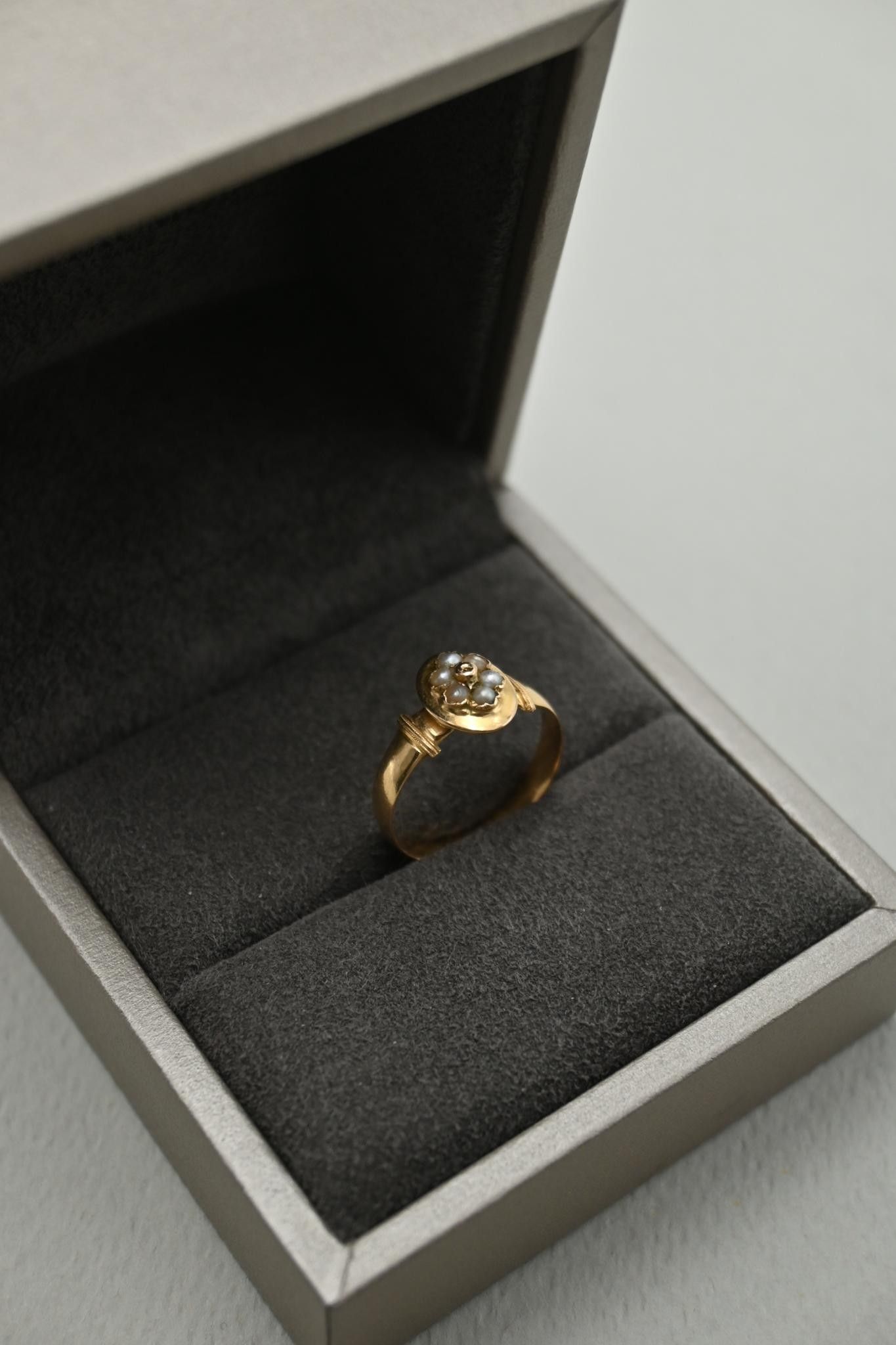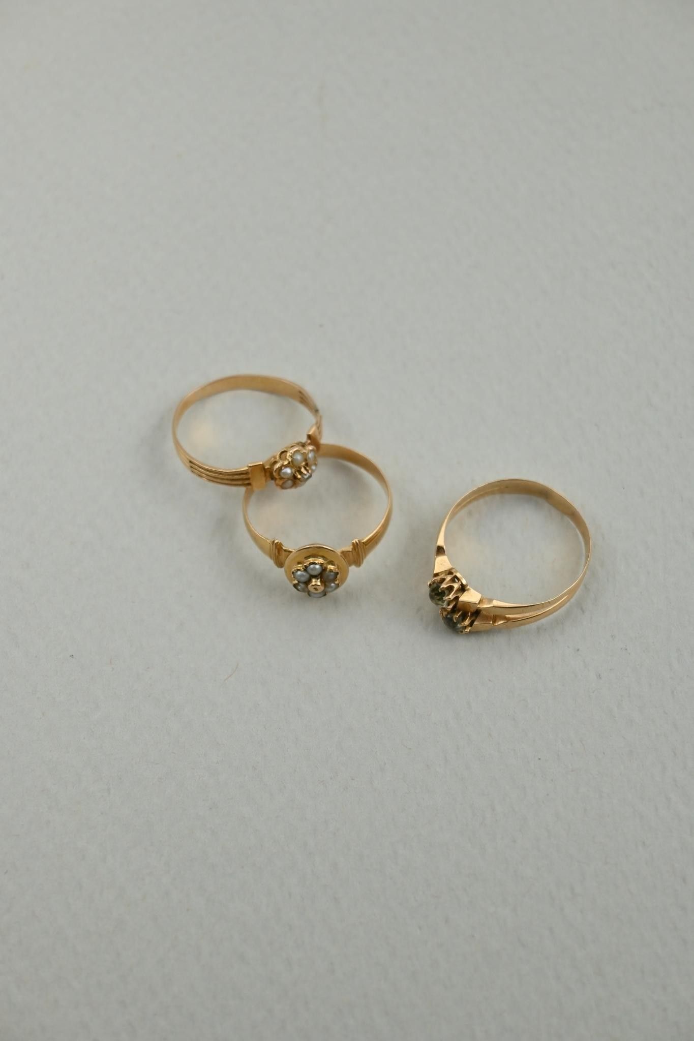 Trois bagues anciennes en or 18K 750 millièmes avec petites perles et pierres