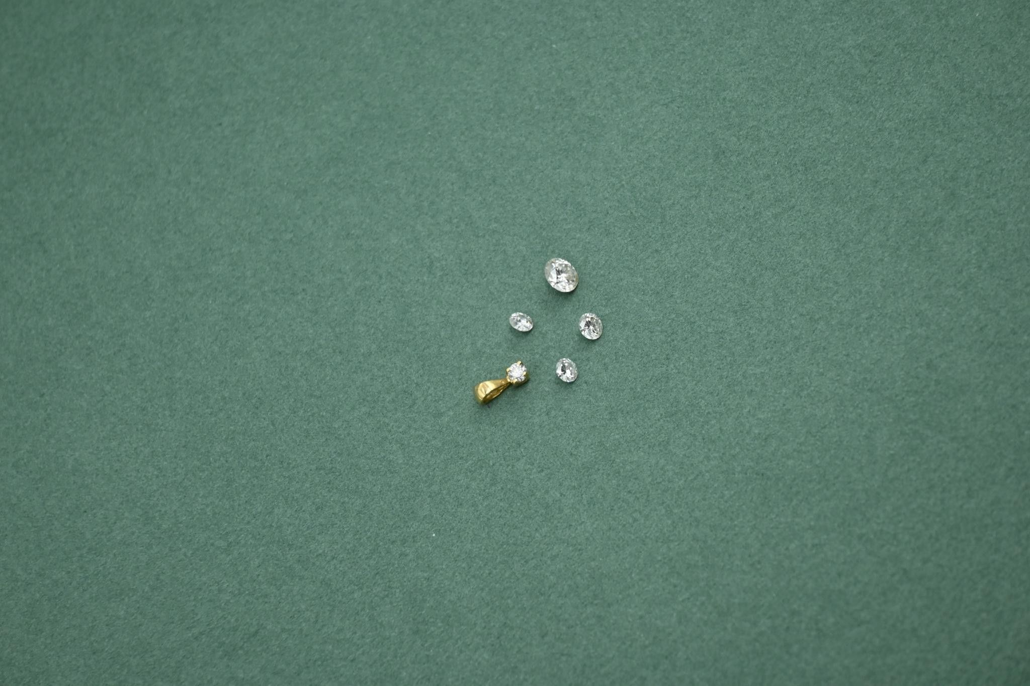 Lot de diamants mêlés pour environ : 0,90 ct + un petit pendentif en or 18K 750 millièmes avec son diamant d'env. 0,02 ct.