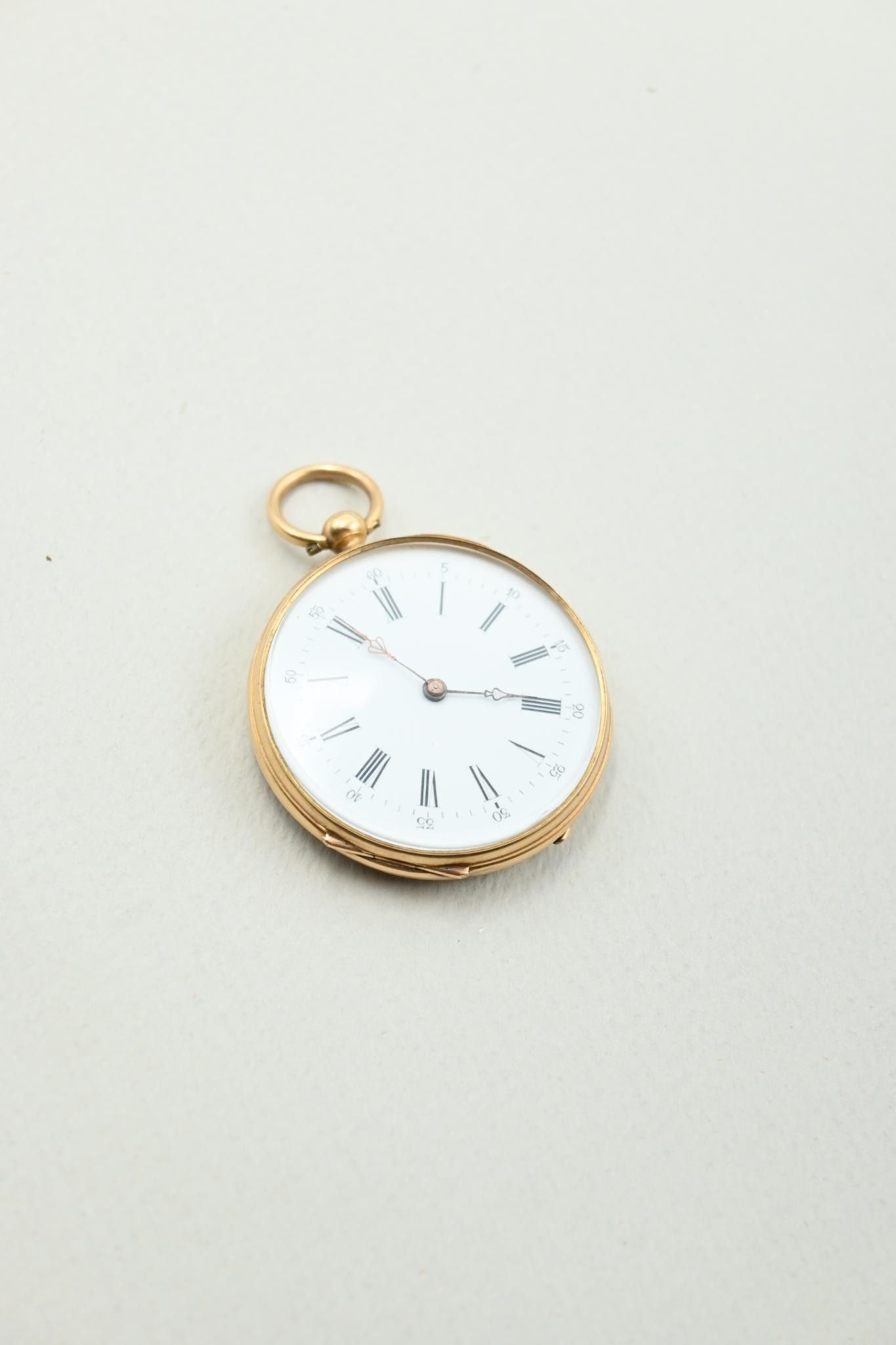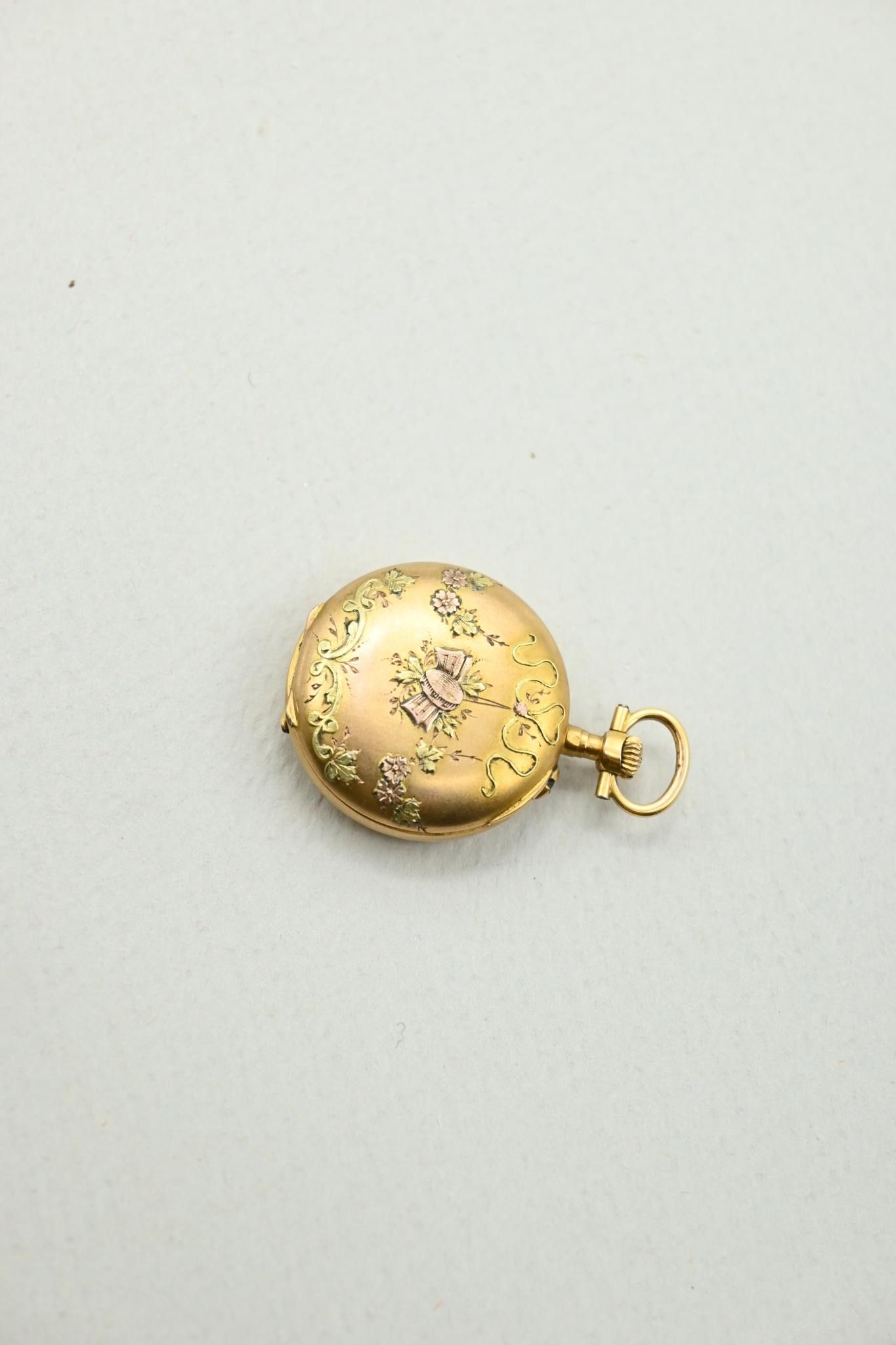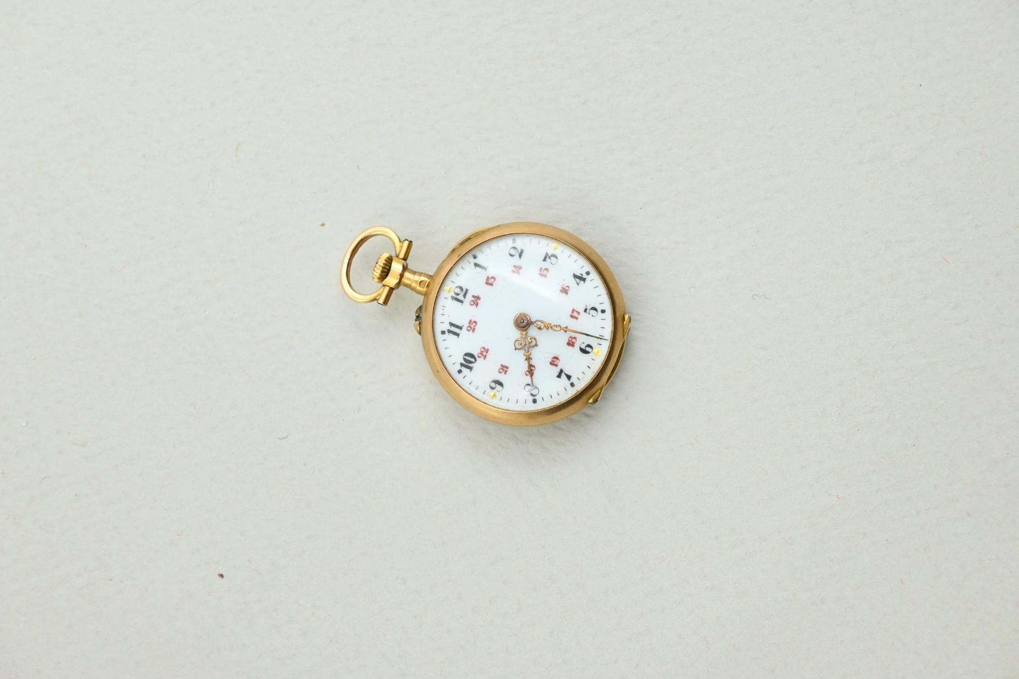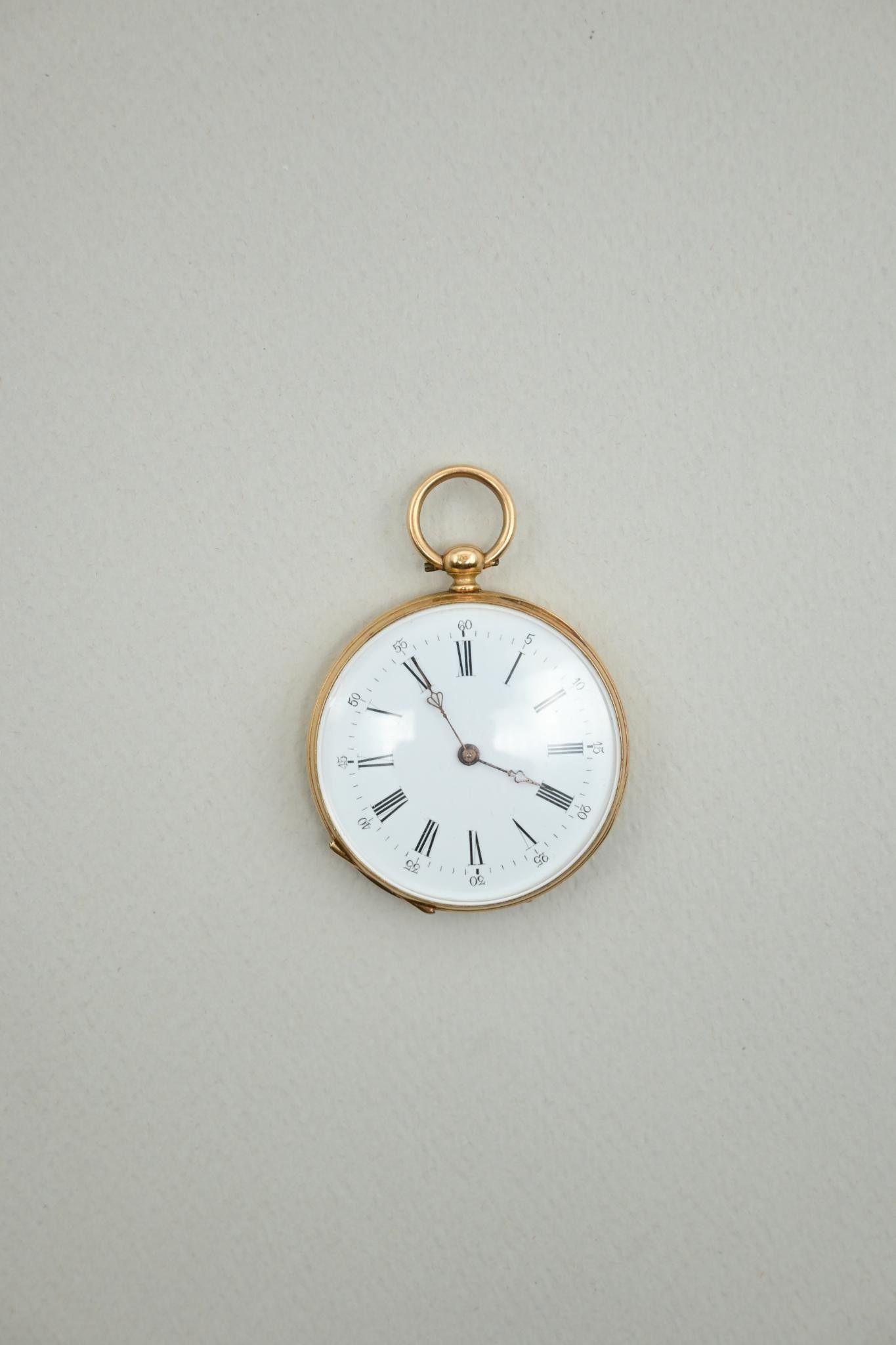 Deux montres à gousset et une montre de col en or 18K 750 millièmes. Cache-poussières en métal.