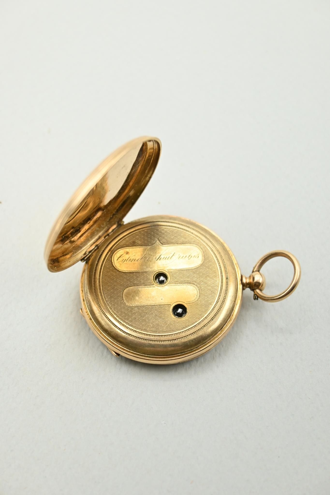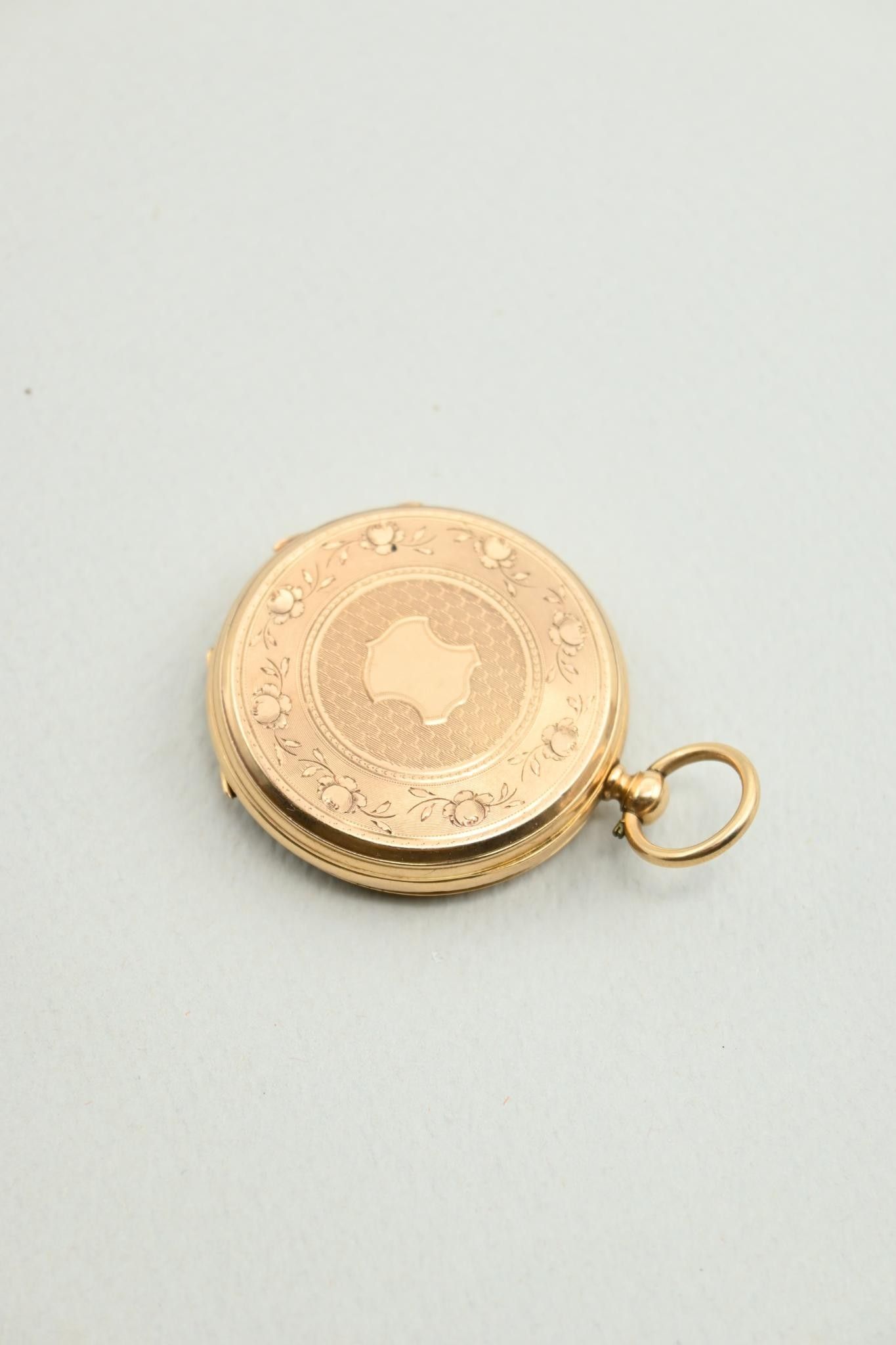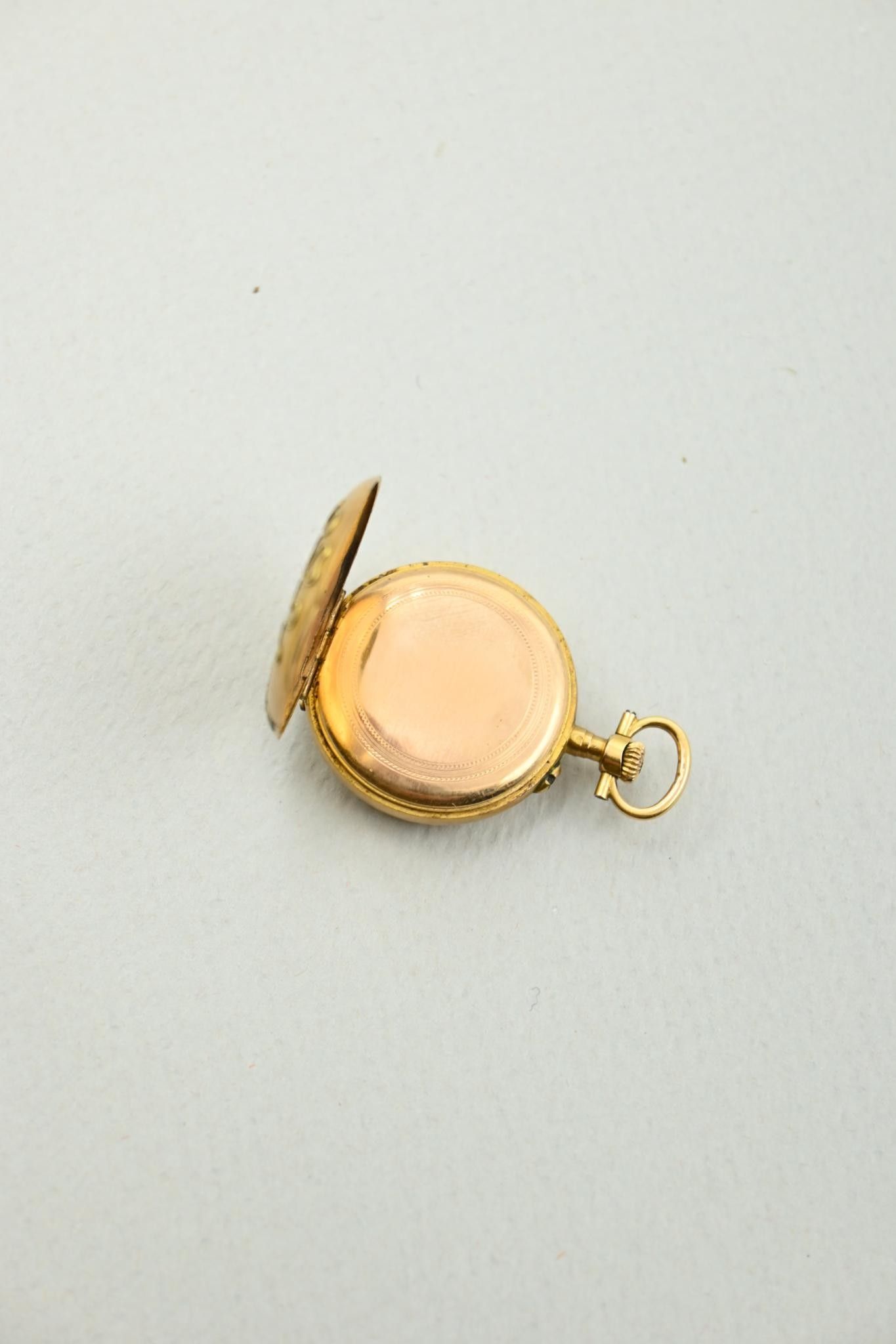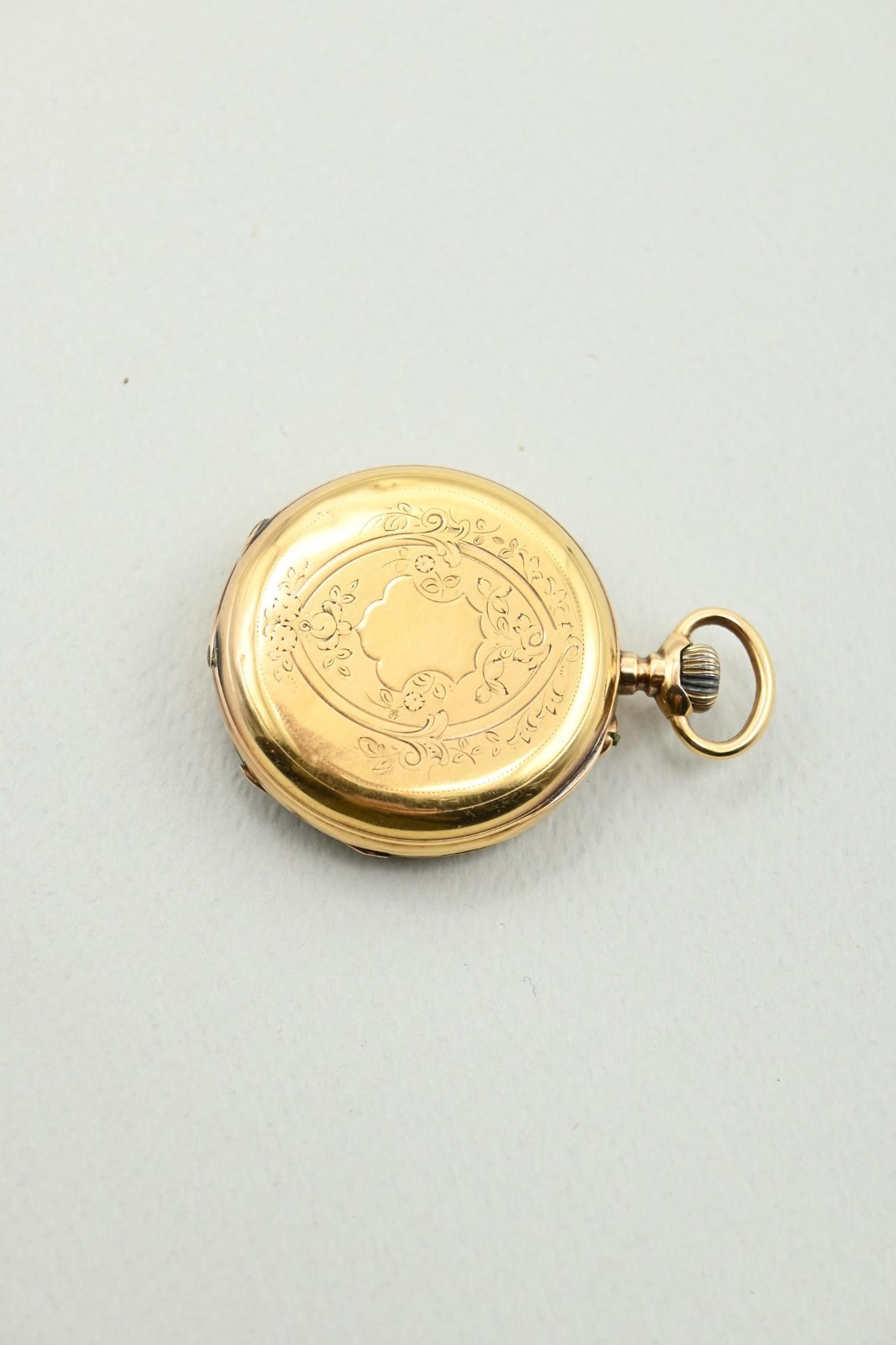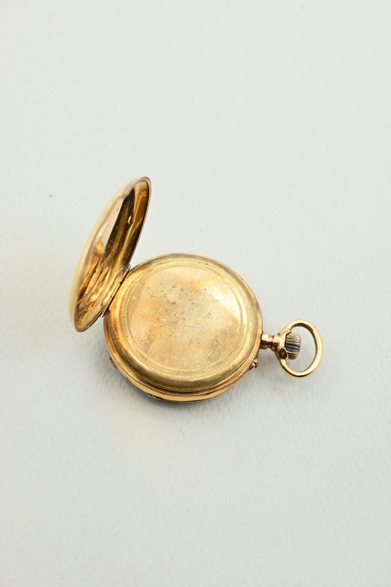 Deux montres à gousset et une montre de col en or 18K 750 millièmes. Cache-poussières en métal.
