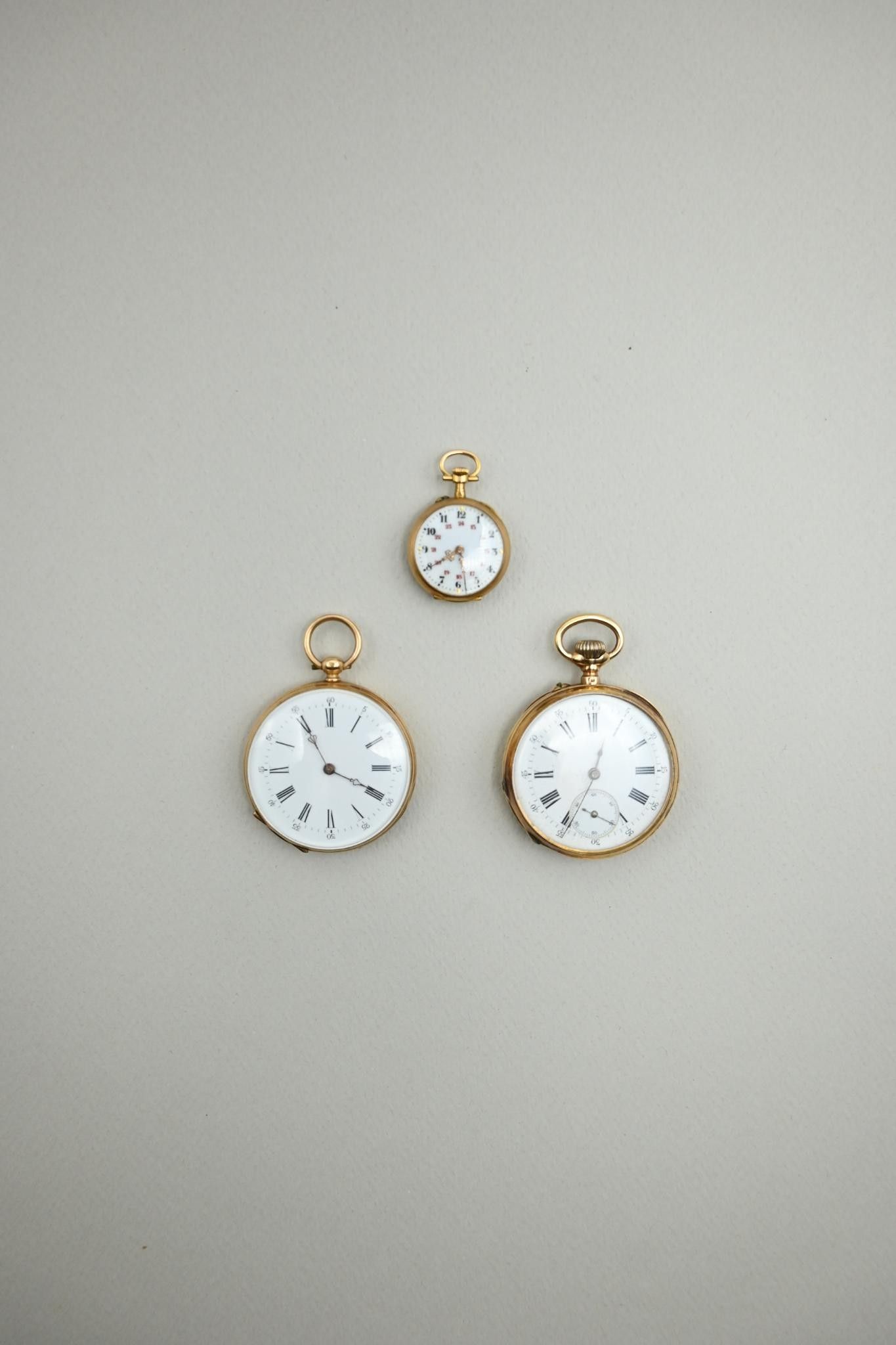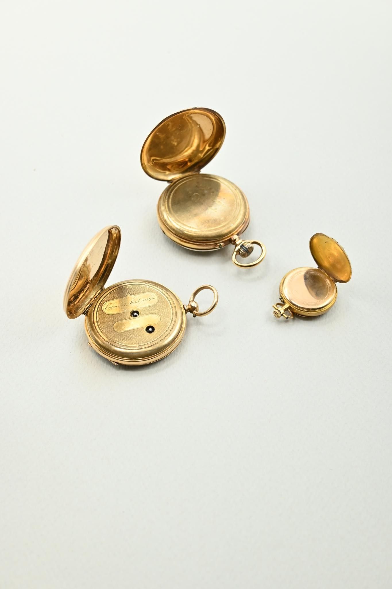 Deux montres à gousset et une montre de col en or 18K 750 mi…