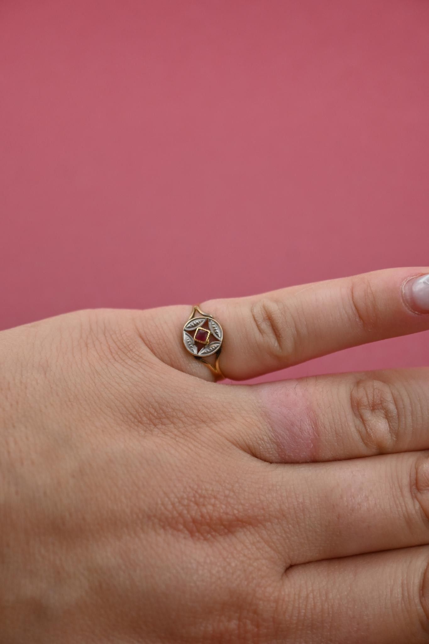 Bague en or 18K 750 millièmes et rubis (frotté)