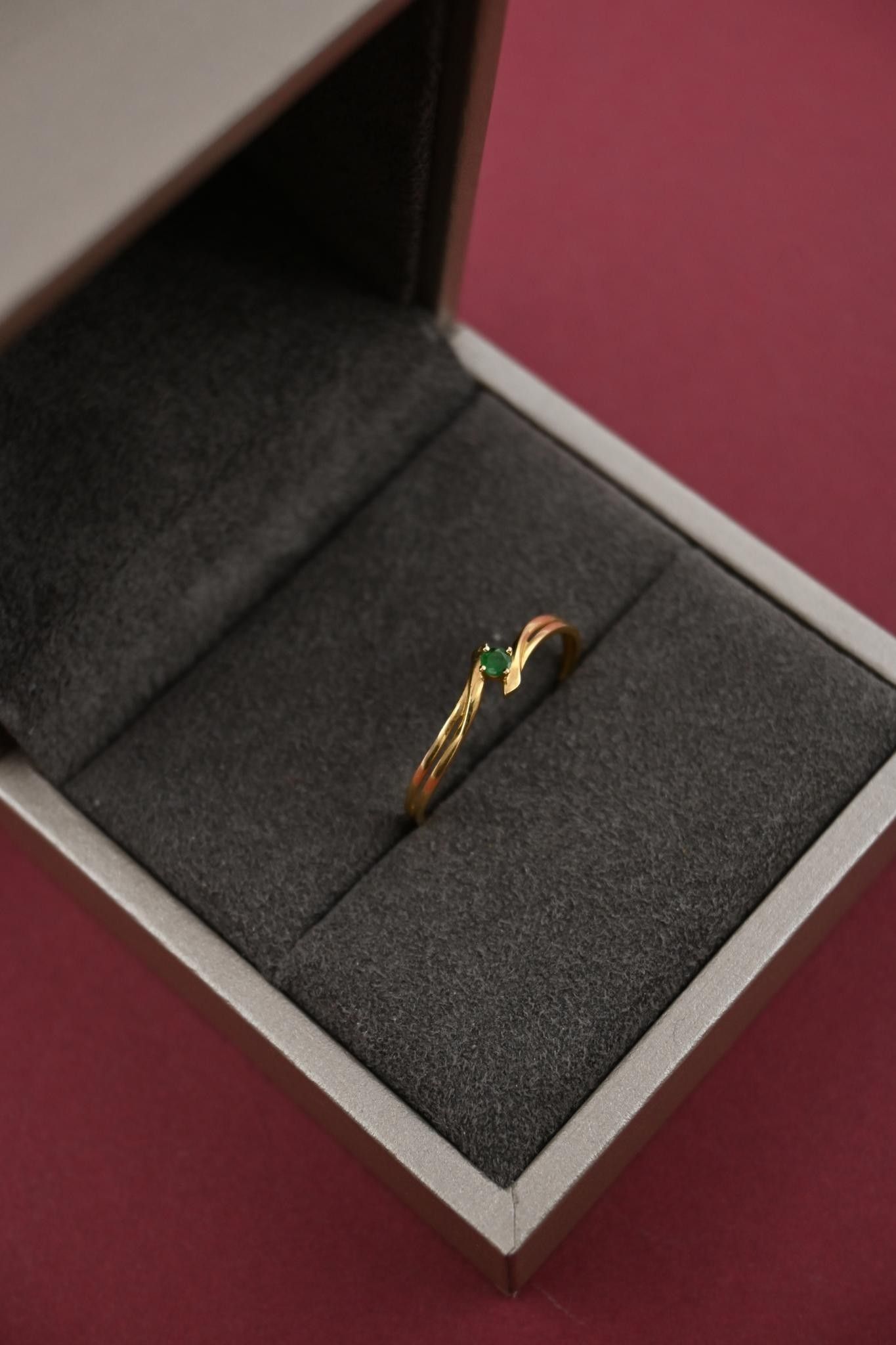Bague en or 18K 750 millièmes et émeraude ronde Tour de doig…