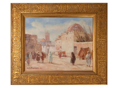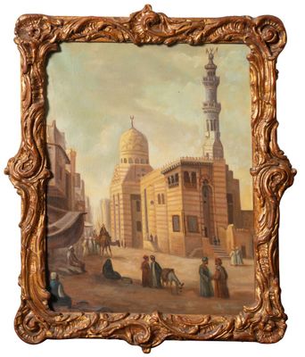 Ecole du XXe siècle. Vue sur la mosquée Huile sur toile, sig…