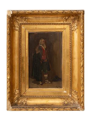 ALBY (XIXe siècle). Homme au manteau Huile sur panneau, sign…