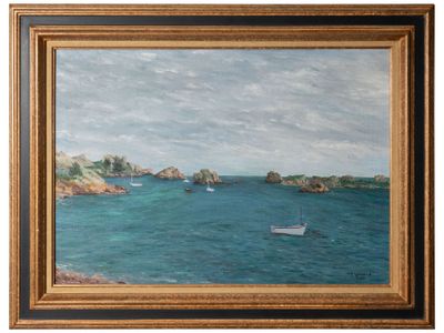 MT LAFORGE (XXe siècle). Paysage côtié, 1988 Huile sur toile…
