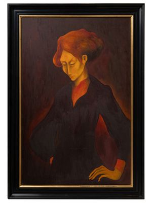 Olga DENITSKAYA (1922). Joueuse de lire Huile sur toile, sig…