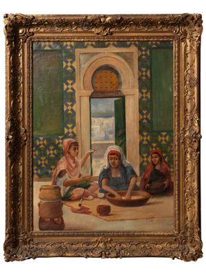 JM FRANCOIS (XXe siècle). Rue orientaliste,1933 Huile sur to…