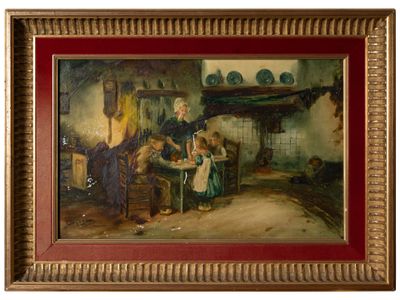 Slagean (?). Scène d'intérieur Huile sur plaque de porcelain…