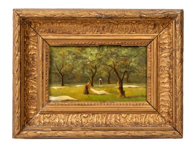 École du XIXe siècle. Lavandières Huile sur panneau H.