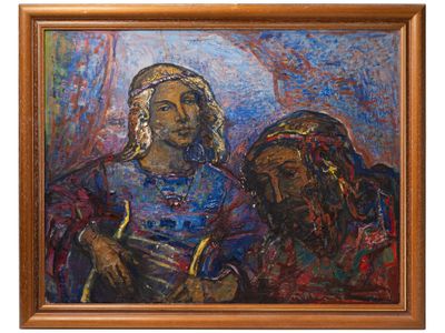 RIGHI G. Deux mendiants, 1968 Huile sur toile, signée en hau…