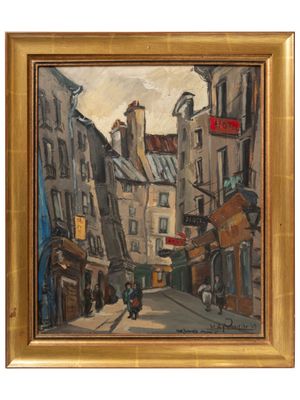 HA ROUGIER (XXe siècle). Au zacharis, Paris V, 1949 Huile su…