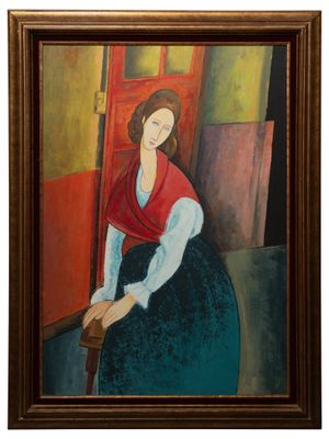 D'après MODIGLIANI. Femme au châle rouge Huile sur toile; re…